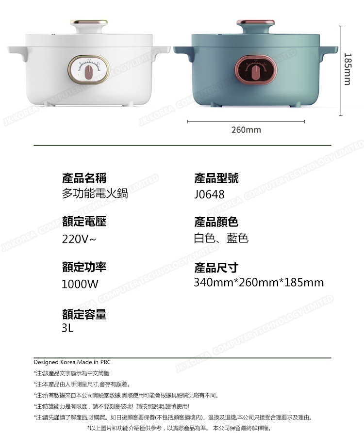 Korea JK household multi-function frying one non-stick electric hot pot 3L large capacity electric hot pot
