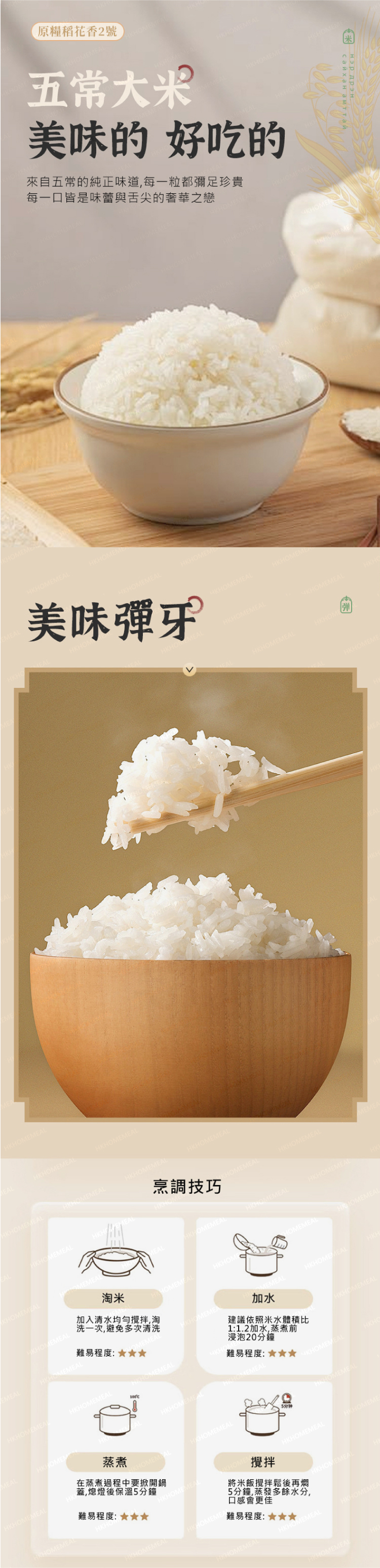 煮飯時,米與水的比例建議為1:1.2,煮熟後燜5-10分鐘,口感更佳。