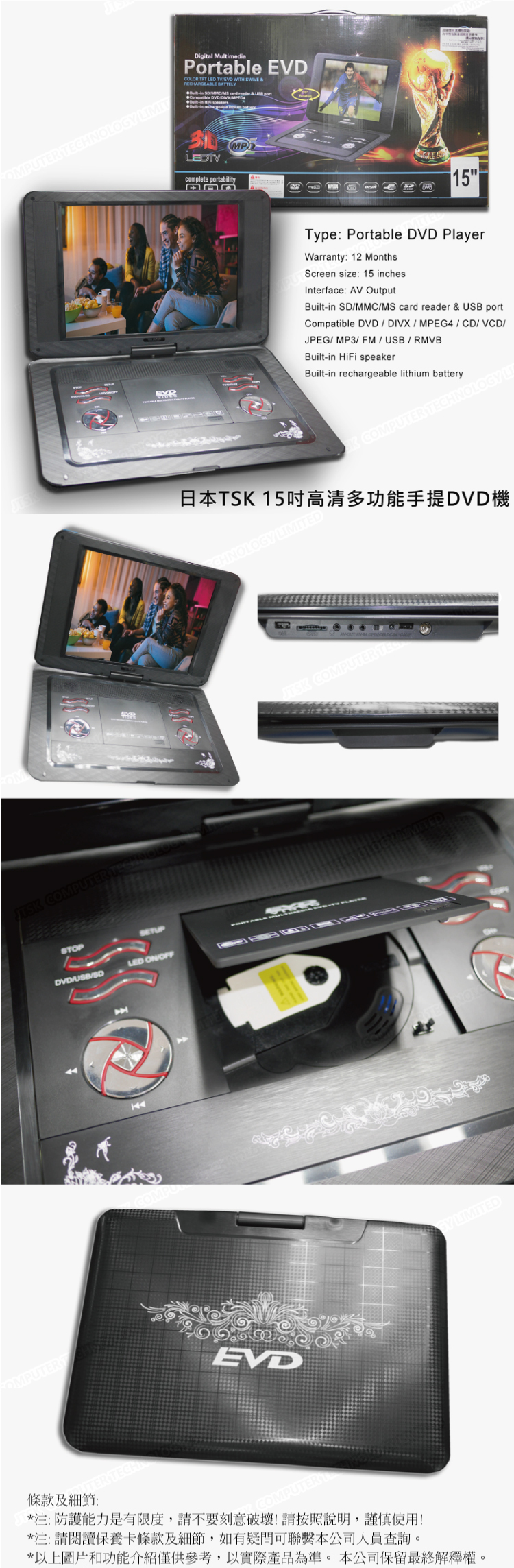 兼容: DVD / DIVX / MPEG4 / CD/ VCD/ JPEG/ MP3/ FM / USB / RMVB