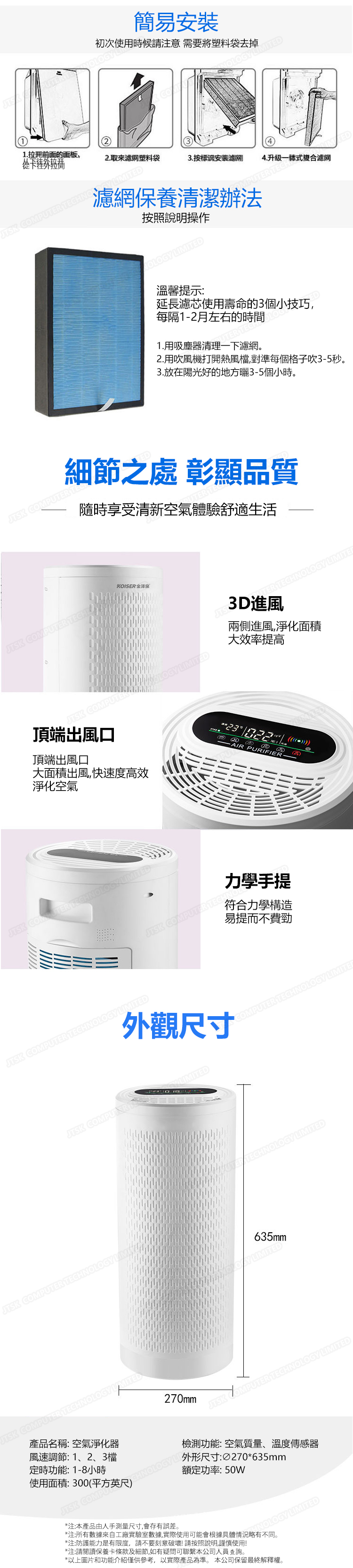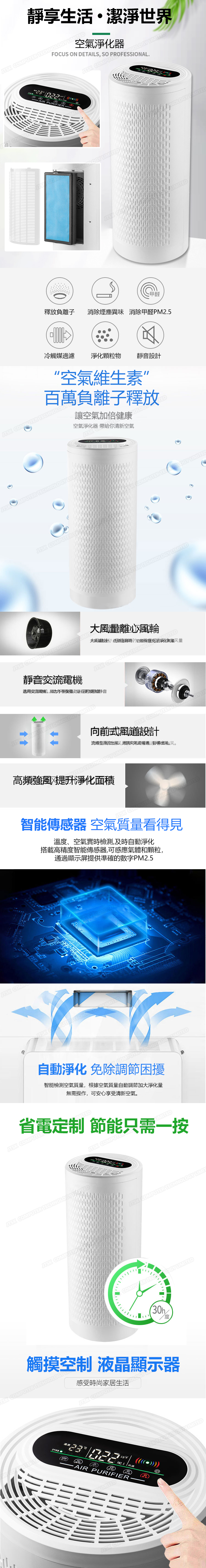 日本AKI 智能圓柱款負離子空氣淨化器 除甲醛清新機 (A0132)