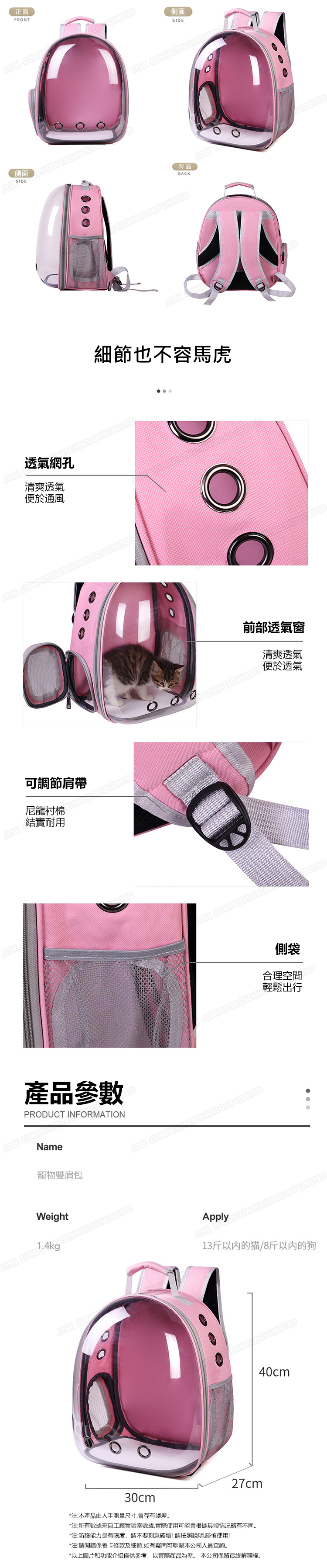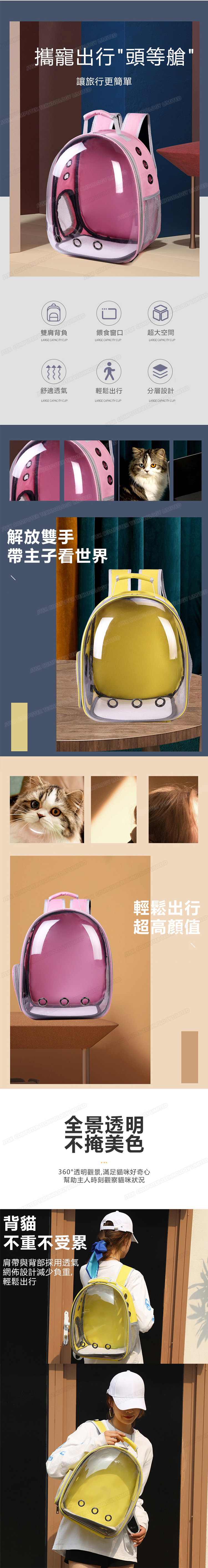 日本AKI 貓包寵物雙肩包 大容量透明貓貓太空包 手提雙肩防潑水寵物包 (A0112)