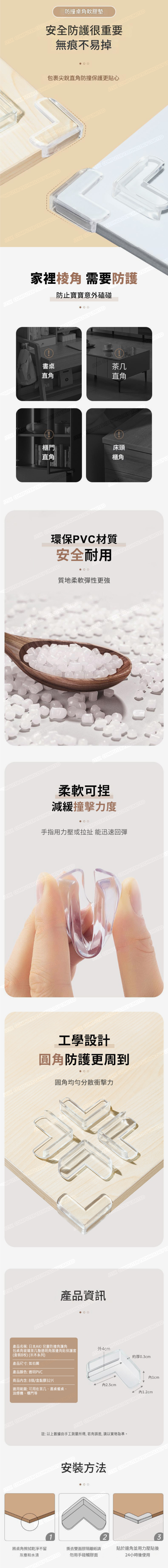 日本AKI 兒童防撞角護角包桌角玻璃茶几墊透明角落邊角貼保護套|防撞膠(盒裝8枚)(米木系列) A0224