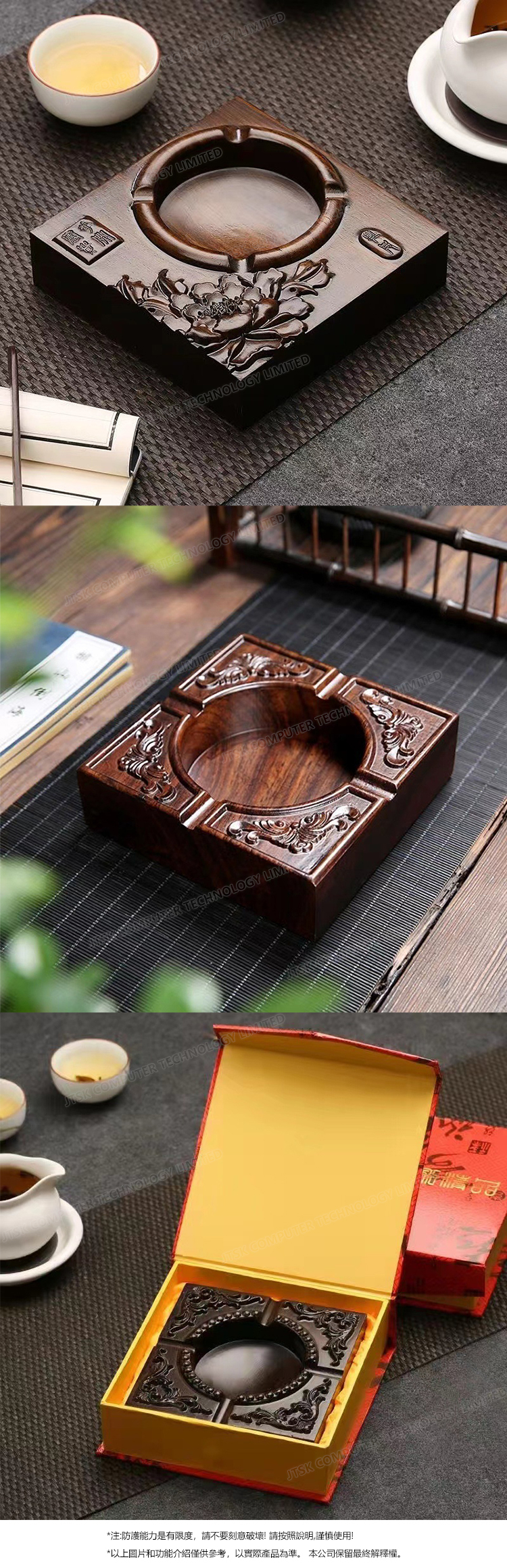 日本AKI 中式復古煙灰缸 書法硯台通用 個性木雕刻煙灰缸 (A0092)