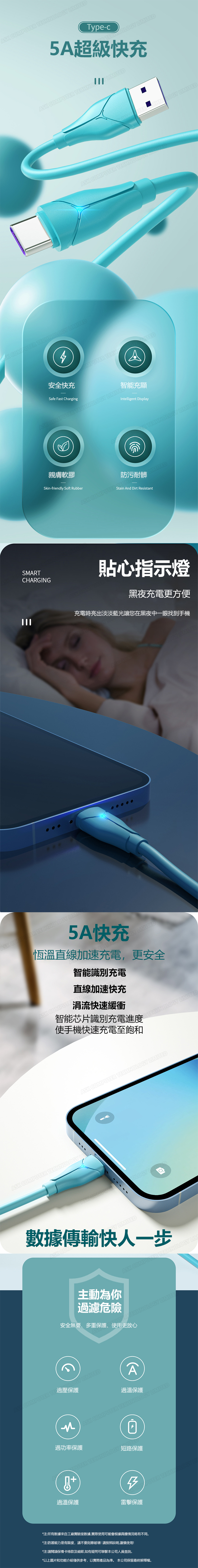 日本AKI 適用TYPE-C接口5A快充充電線 手機數據線(1.5米) (A0035)