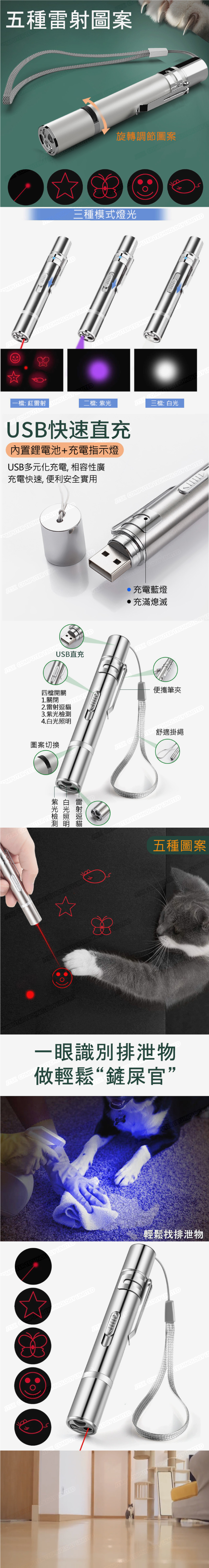日本AKI USB充電激光逗貓棒多圖案紫光貓咪玩具寵物玩具逗貓激光筆 A0236