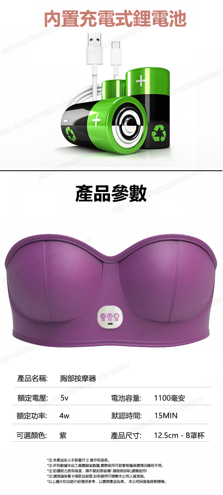日本AKI 無線震動胸部按摩儀器碳纖維加熱敷文胸墊 (A0097)