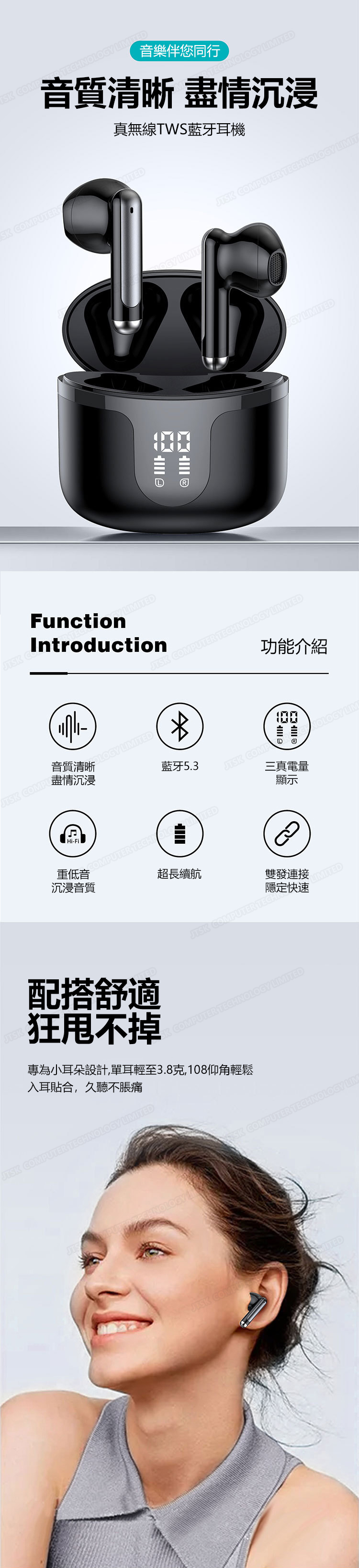 韓國AMC 藍牙5.3 舒適入耳迷你高續航TWS無線藍牙耳機 (C0091)