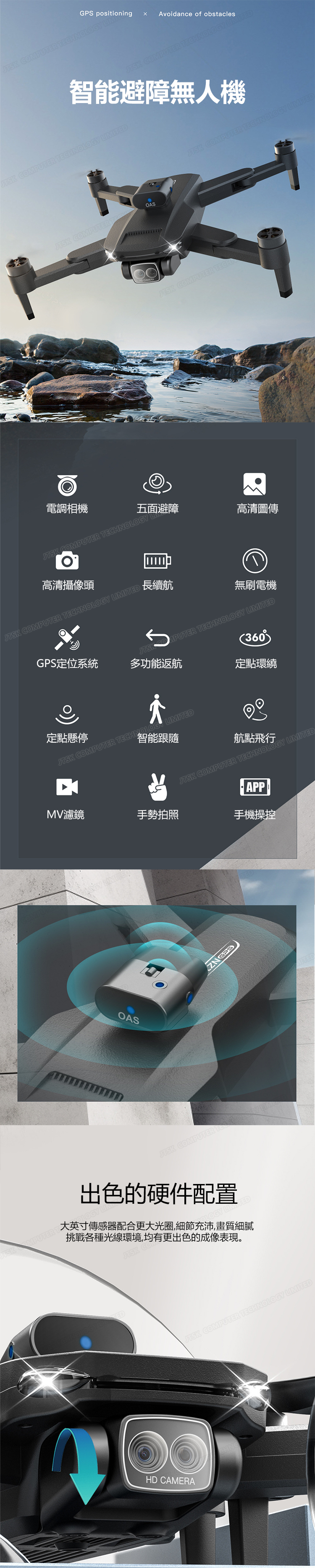 AMC KOREA - 智能紅外避障4K高清四軸航拍無人機 (跟機一電版) C0052