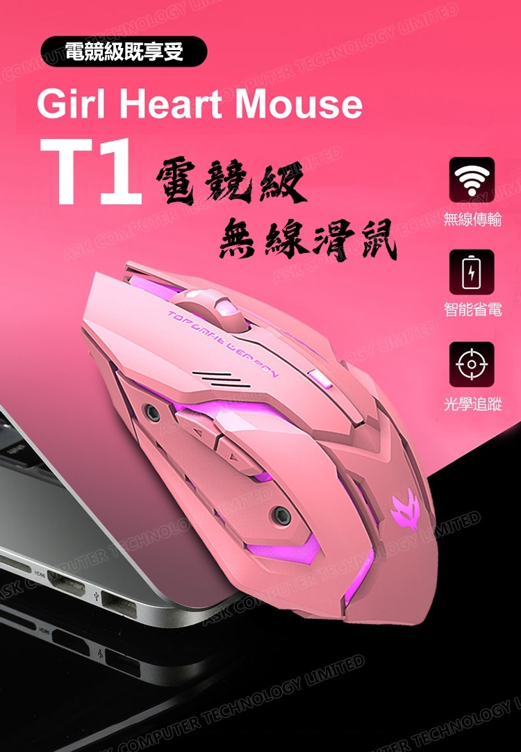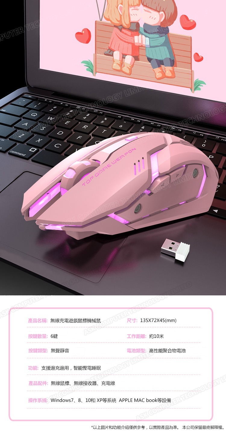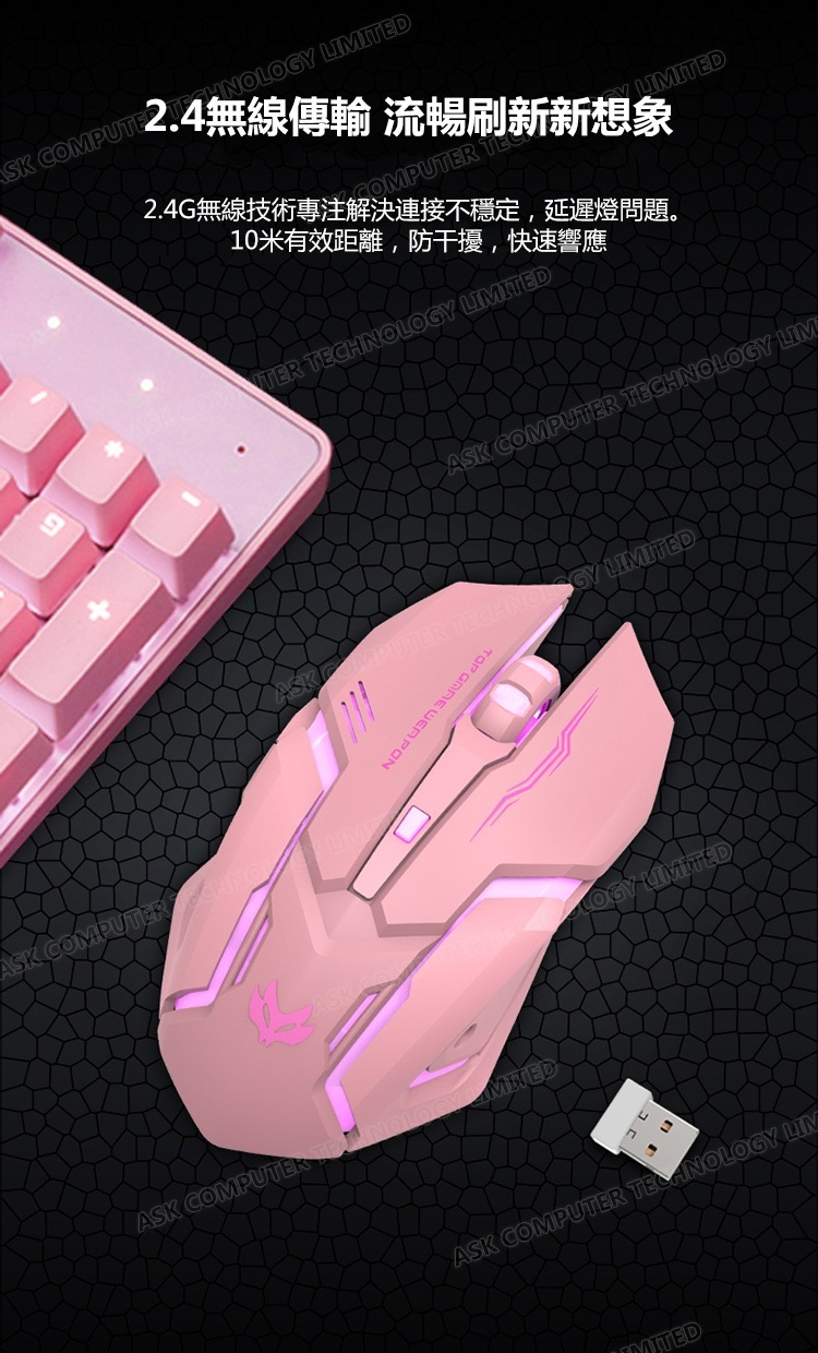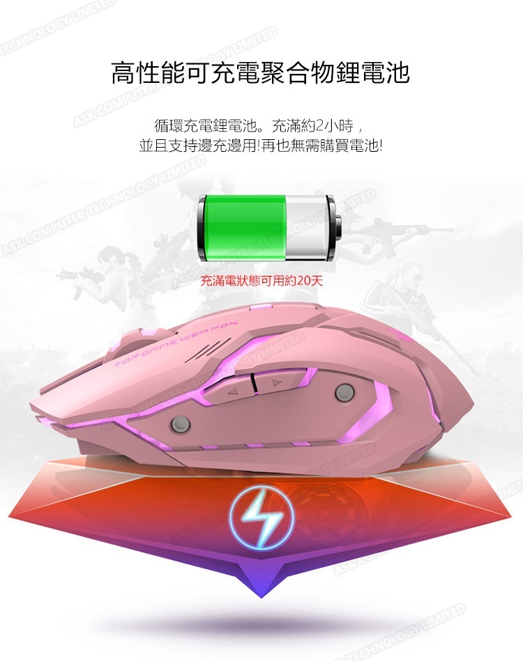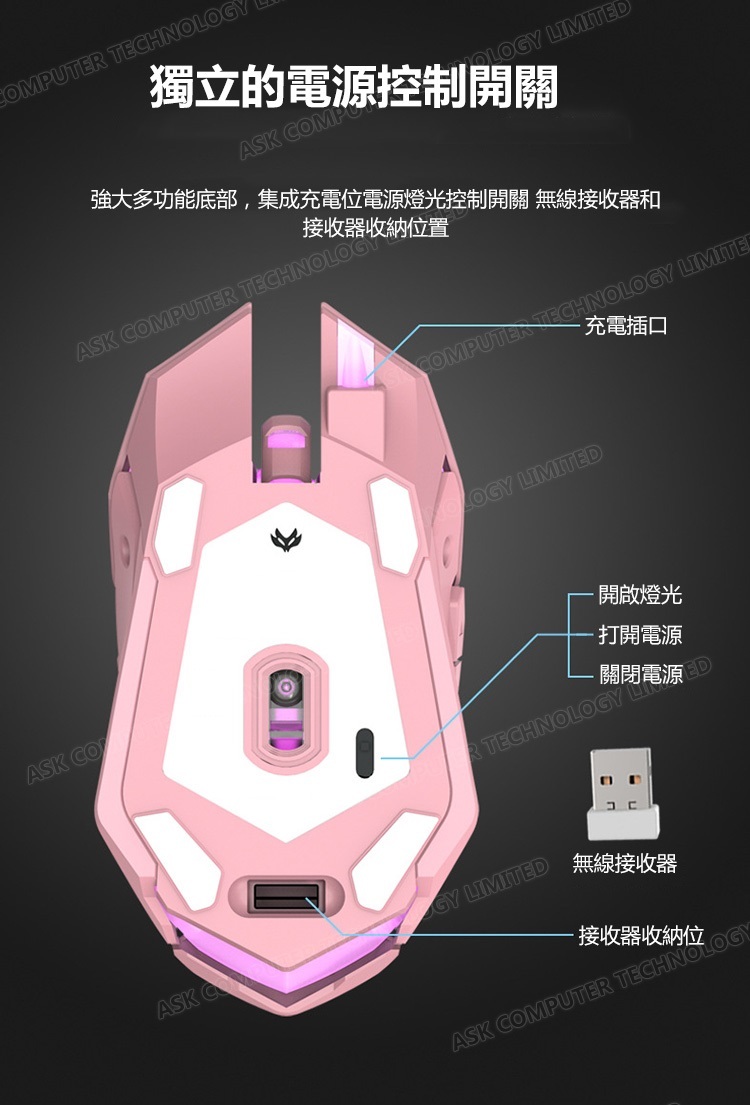 韓國B&C 靜音可愛發光滑鼠 無線充電遊戲鼠標機械鼠 B0050