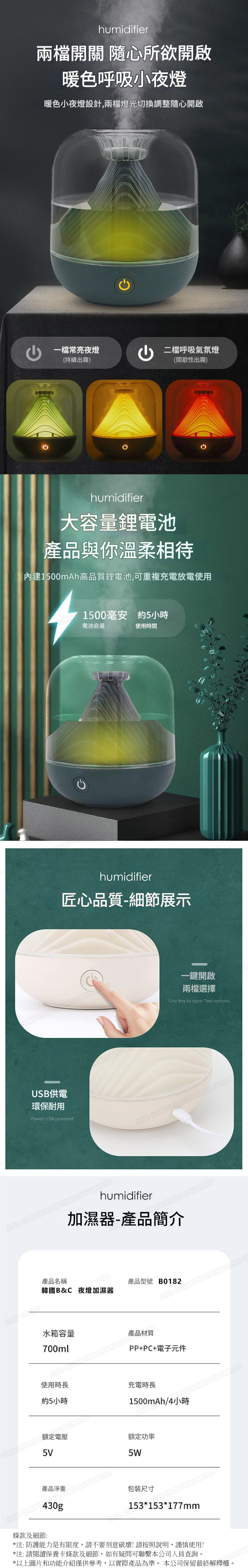 韓國B&C USB充電加濕器家用大霧量無線加濕器 B0182