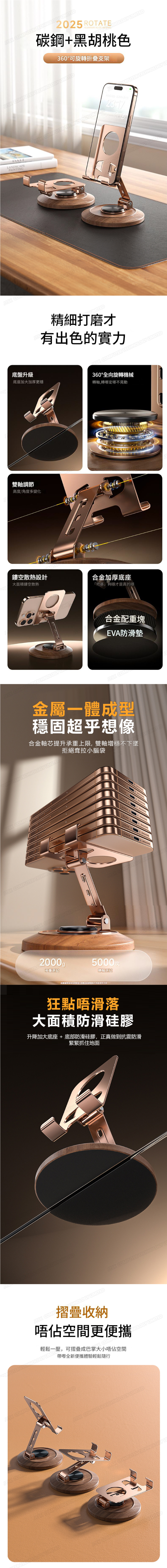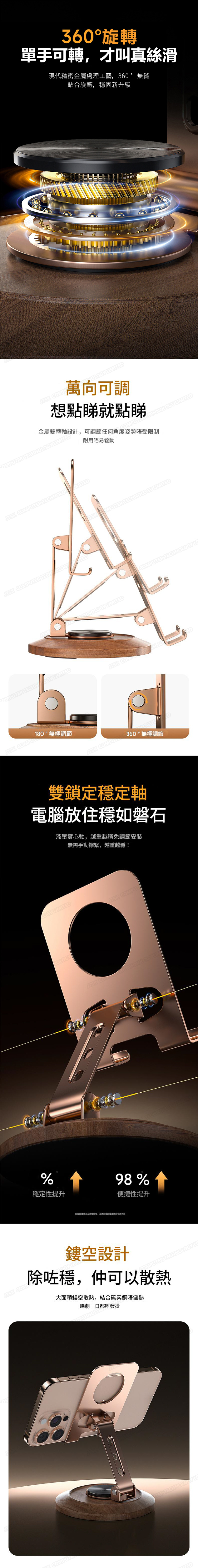 韓國B&C 胡桃木紋底座金屬手機支架旋轉可調式桌面懶人專用便攜式支撐架 B0205