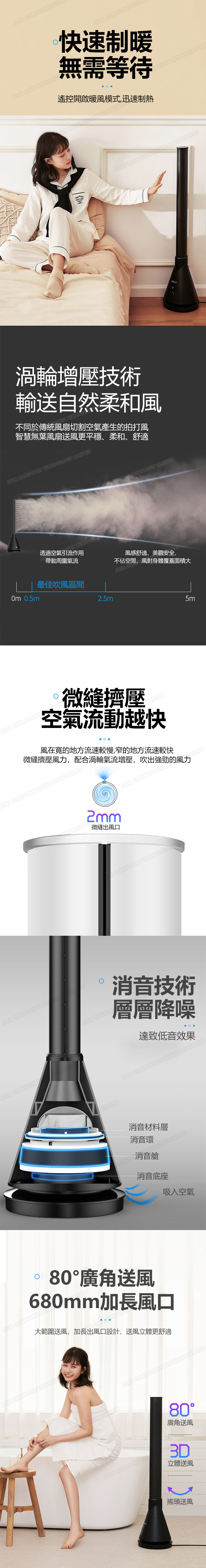 日本TSK 智能WiFi遙距操控無葉靜冷暖風機 P3852