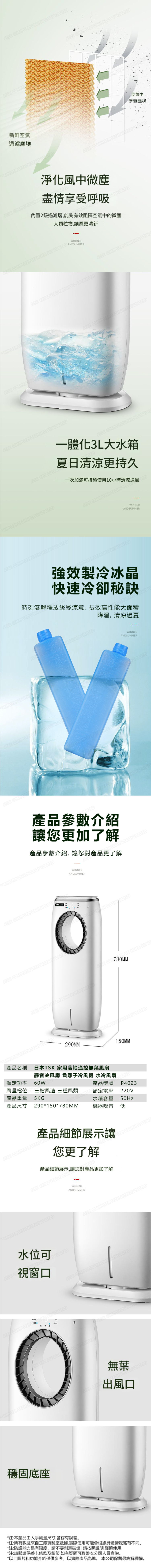 日本TSK 家用落地遙控無葉風扇靜音冷風扇負離子冷風機水冷風扇 P4023