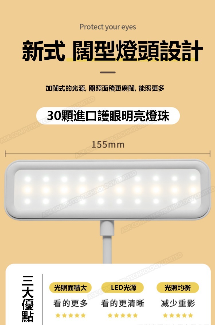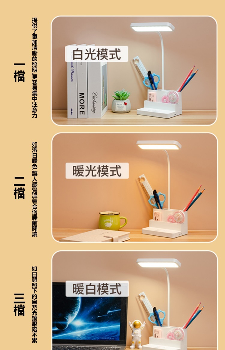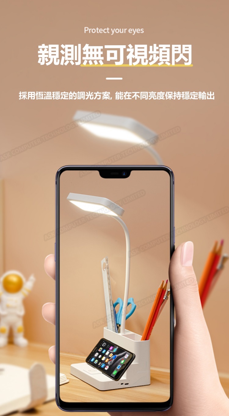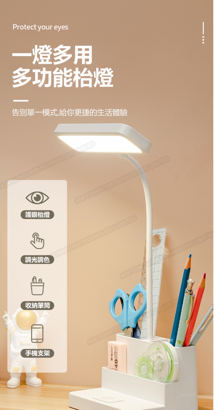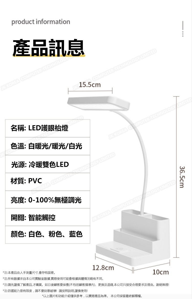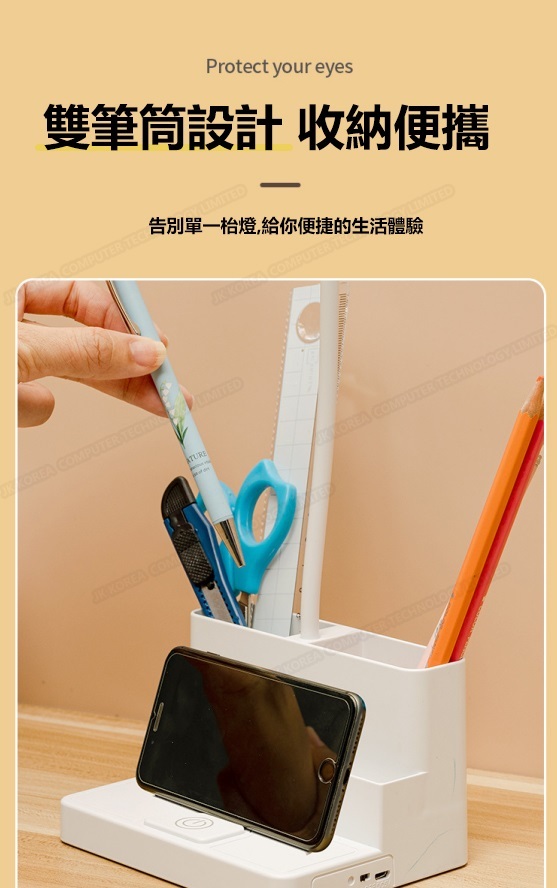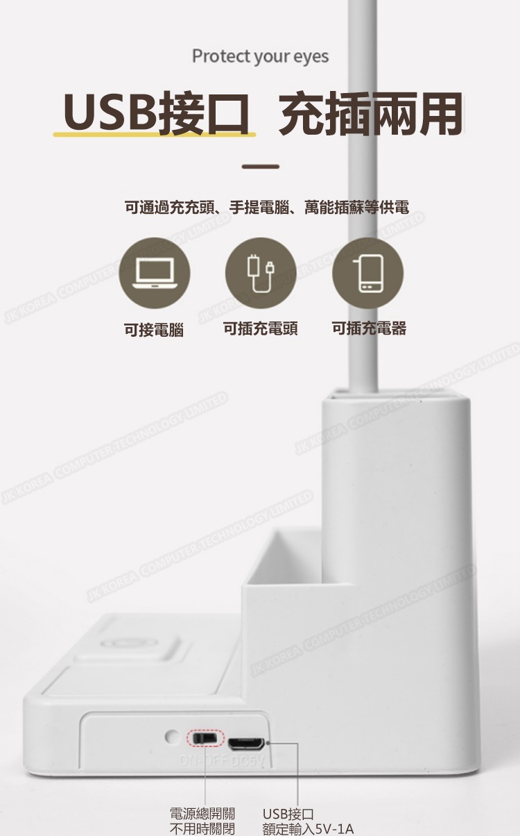 韓國JK 新款多功能智能LED學習專用檯燈護眼書桌學生兒童宿舍床頭家用閱讀寫作業檯燈(充插兩用) J0659