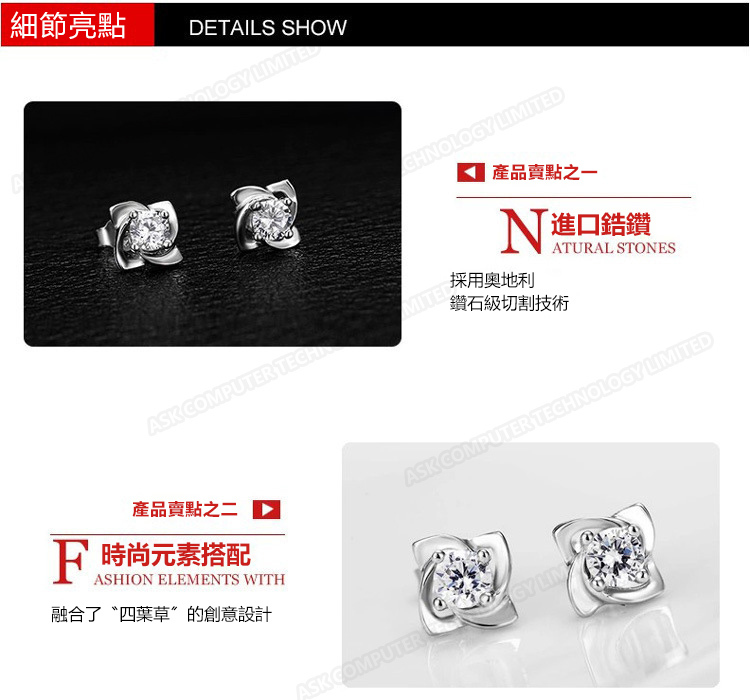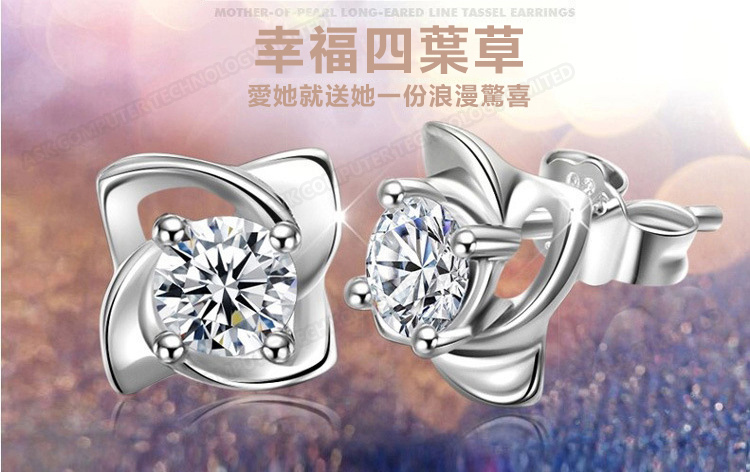 韓國JK 幸福四葉草鍍銀耳釘 J0202
