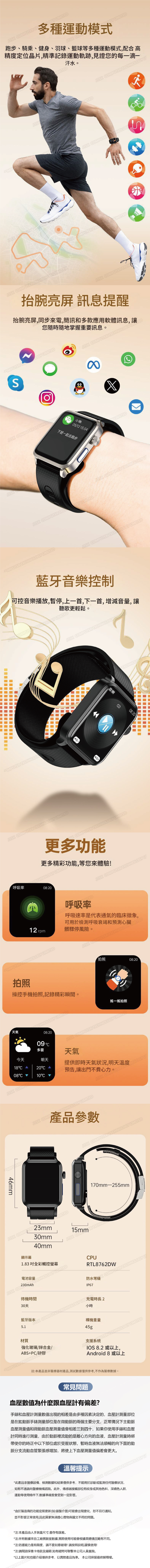 日本TSK ECG心電手錶 氣泵血壓智能手錶 心率運動手環血氧監測健康智能手錶 智能手環 P3951