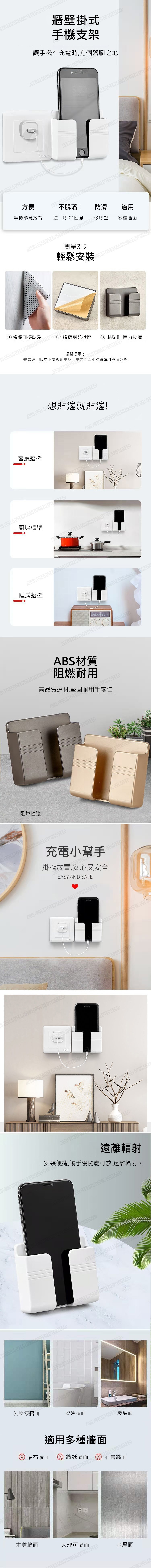 韓國B&C 多功能粘貼式牆壁手機充電支架 創意掛置物架免孔床頭手機支架 (B0148)