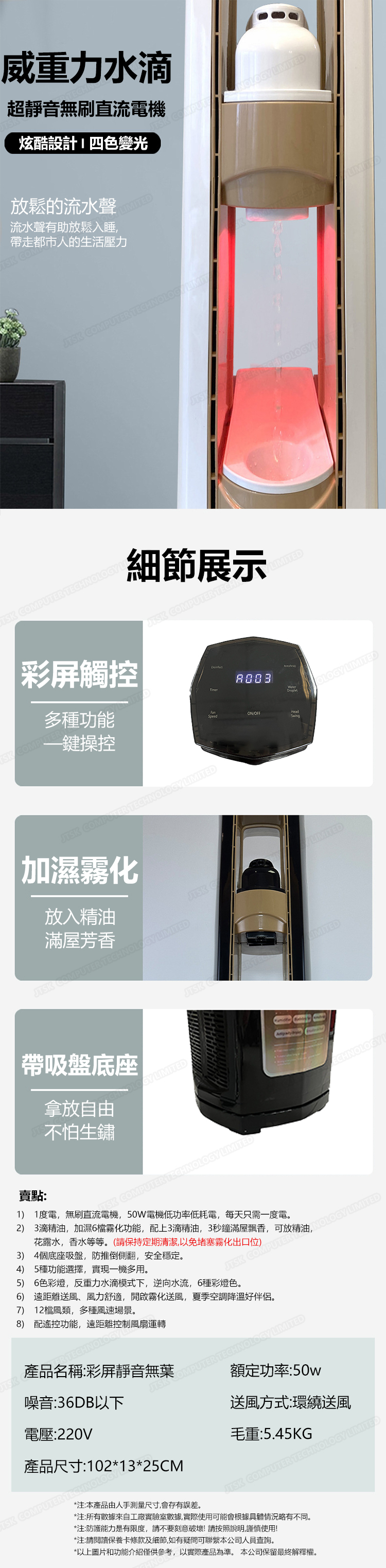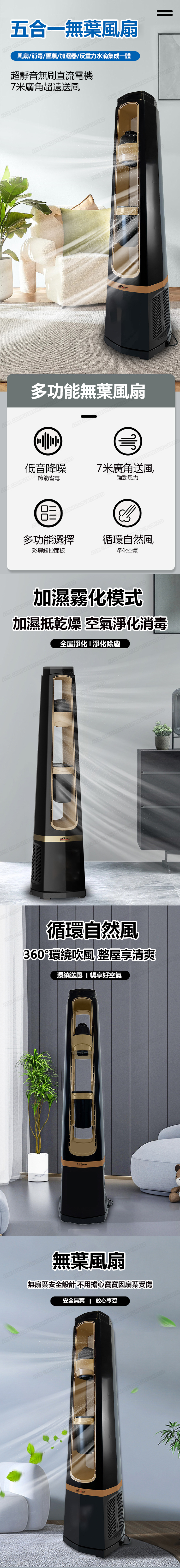 日本AKI 反重力水滴款香薰加濕無葉風扇 落地塔扇 (A0174)