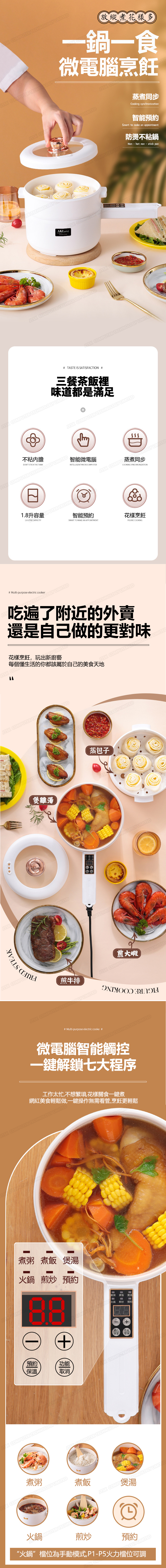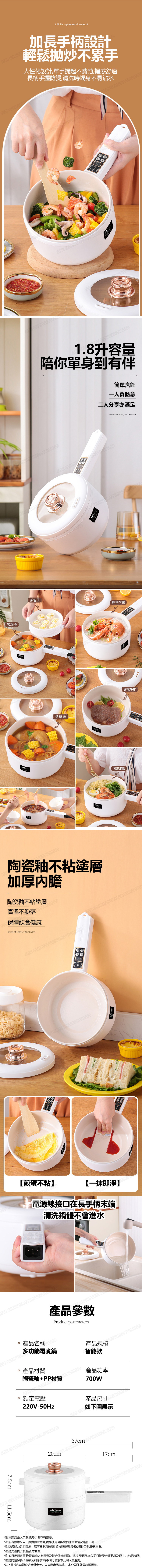 日本AKI 陶瓷內膽不黏鍋 家用小型電蒸煮炒一體鍋 不黏鍋智能電煮鍋