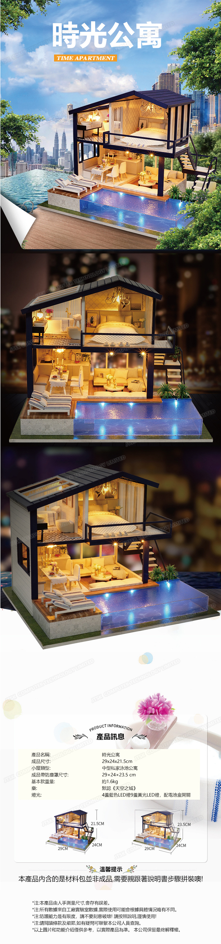 日本AKI DIY手工製作時光公寓泳池款模型大別墅