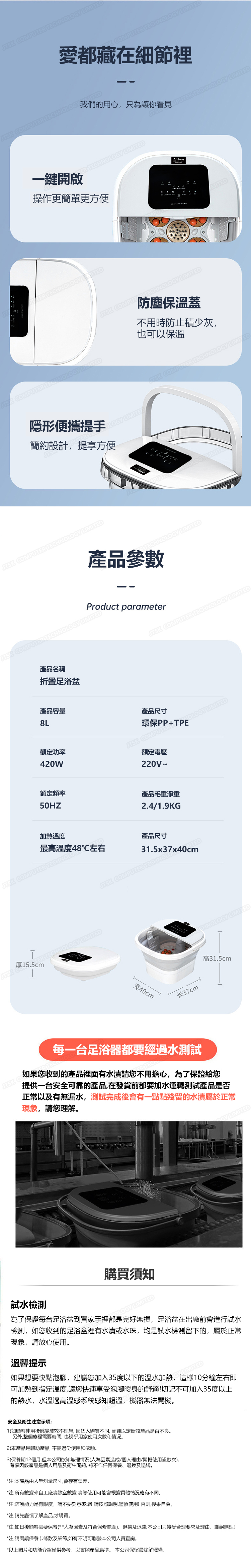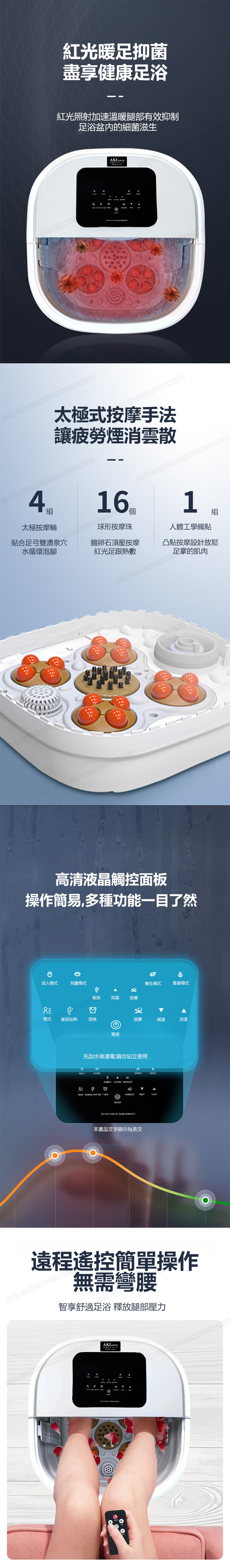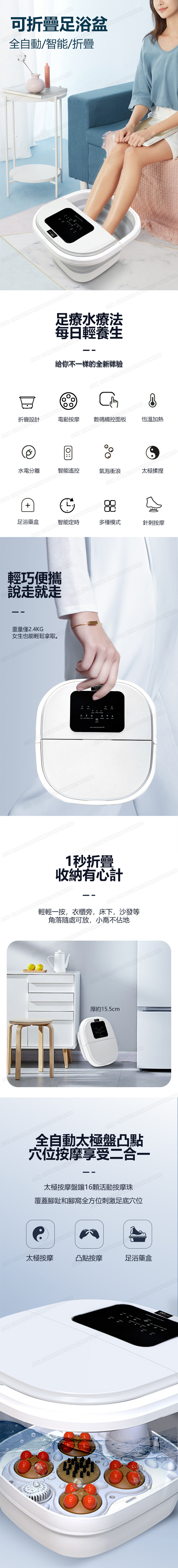日本AKI 折疊遙控款全自動足浴桶 液晶觸控面板多種模式 恆溫加熱 氣泡衝浪 太極揉捏 電動按摩足浴桶