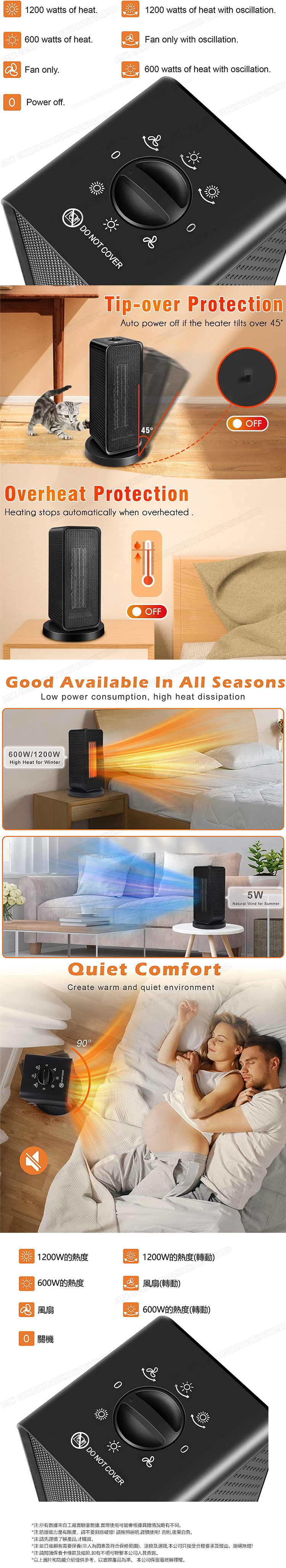 日本AKI 家用立式搖頭溫控靜音暖風機取暖器 帶過熱保護電暖器PTC加熱器