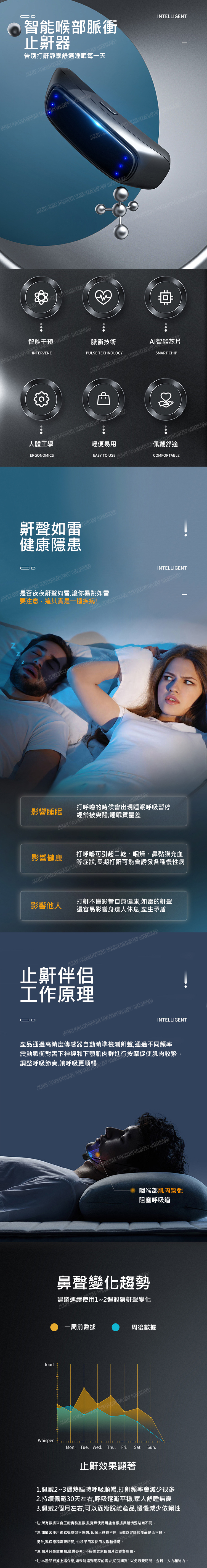 日本AKI 智能喉部脈衝止鼾器防打鼻鼾 全自動男女專用止鼾器