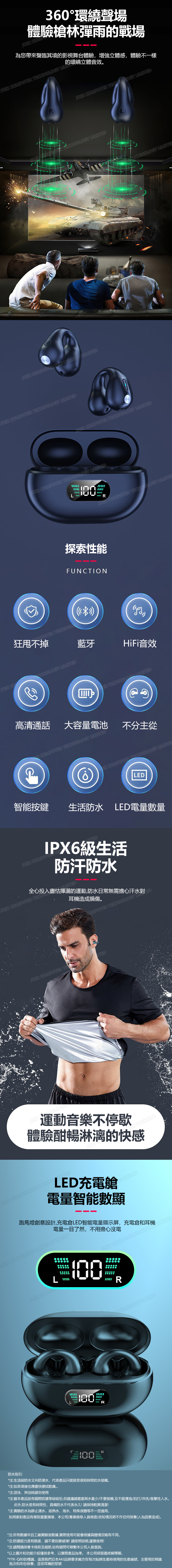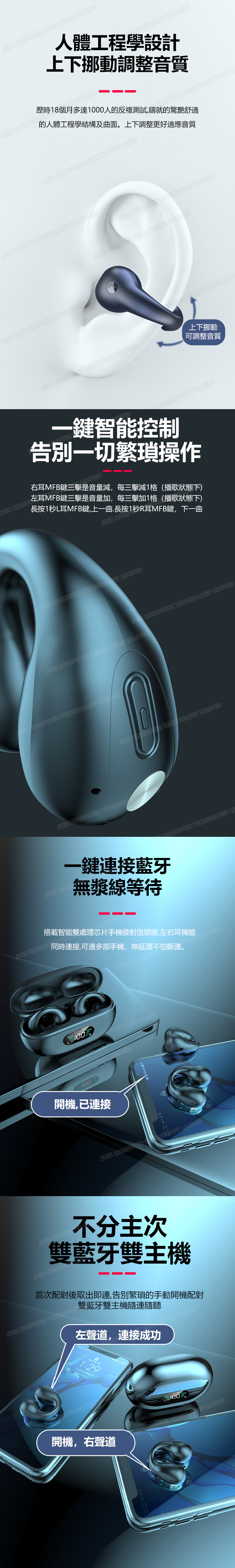 日本AKI 開放式耳機不入耳無線運動耳機新款長續航數顯耳夾式藍牙耳機