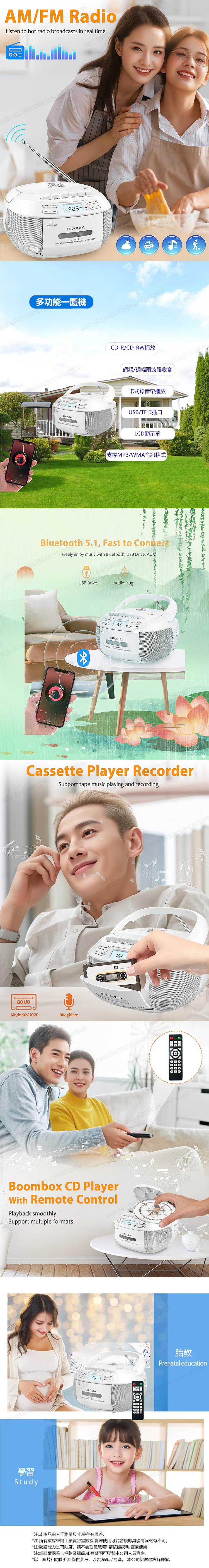 日本AKI 多功能便攜式立體聲藍牙CD機播放器帶卡帶USB帶AM/FMS收音 (A0195)