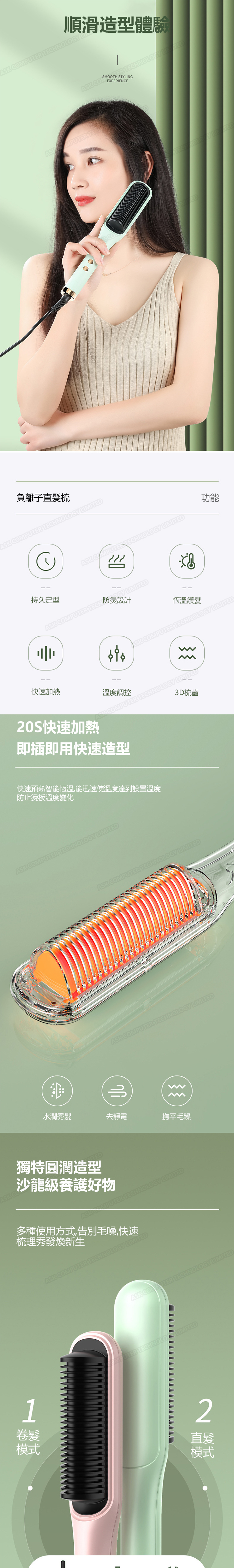 日本AKI 負離子不傷發直髮捲發兩用夾板電髮梳