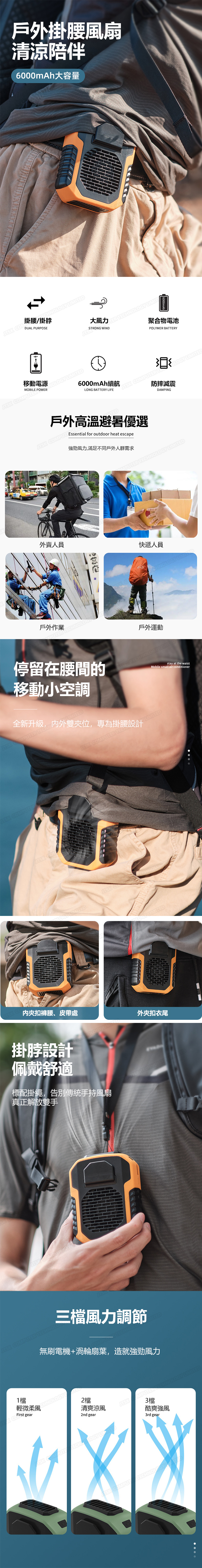 日本AKI 新款戶外掛腰風扇 USB款掛頸風扇(6000mAh) (A0129)