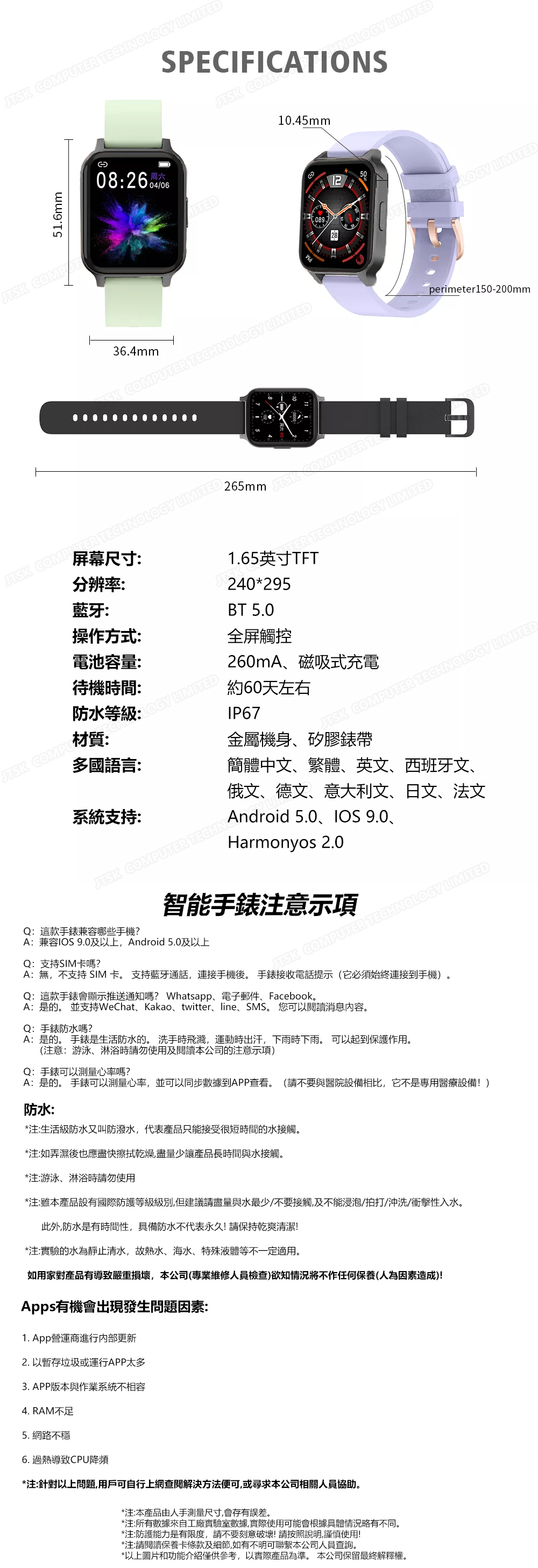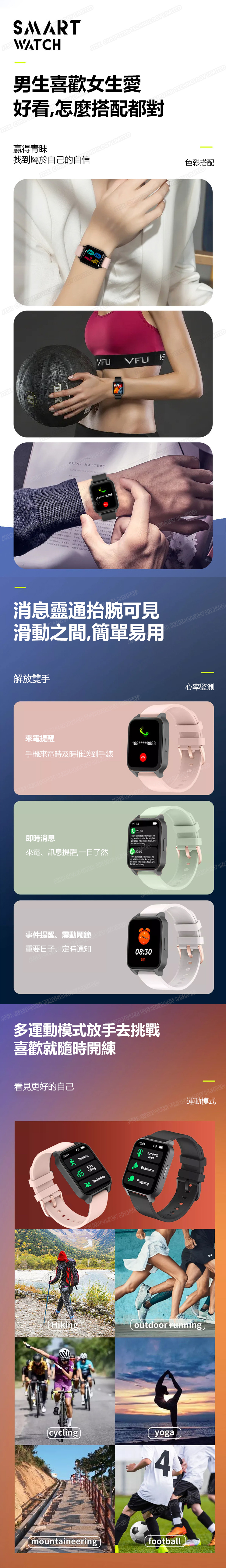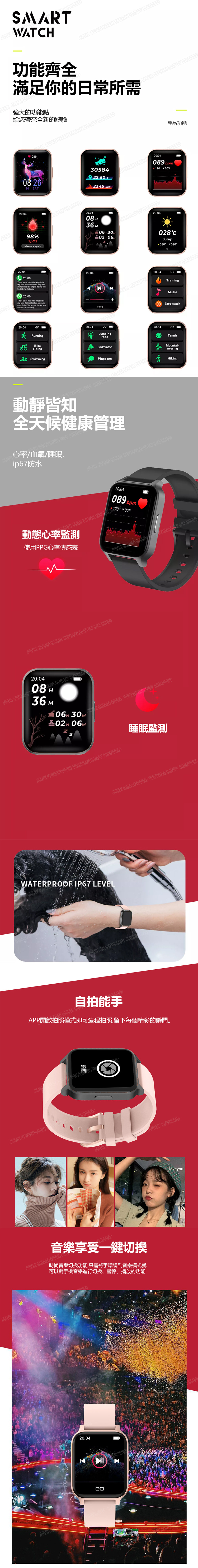 日本AKI 智能觸控運動實時體溫心率藍牙手錶 血氧儀音樂信息推送智能手環