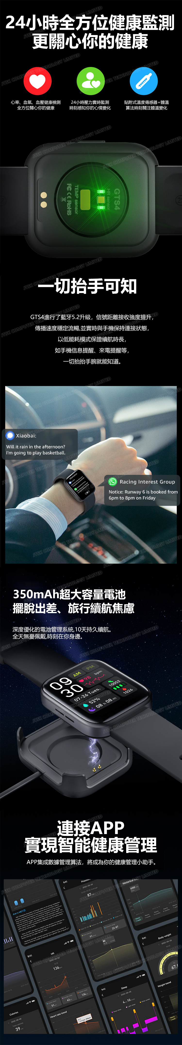 日本AKI 智能觸控運動實時體溫心率血壓血氧檢測藍牙手錶 通話音樂信息推送智能手環