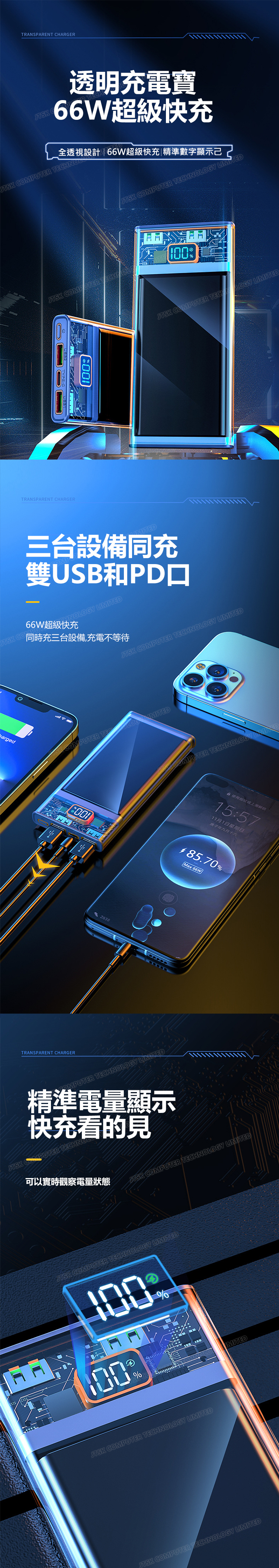 日本AKI 透明超級快充10000毫安移動電源充電寶