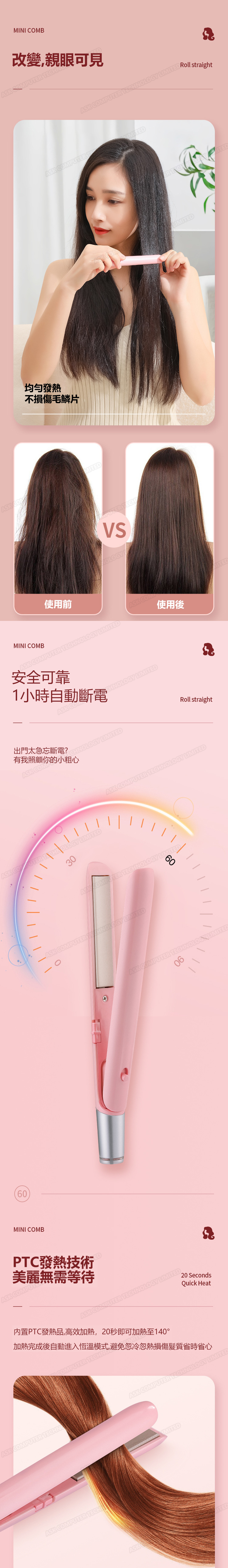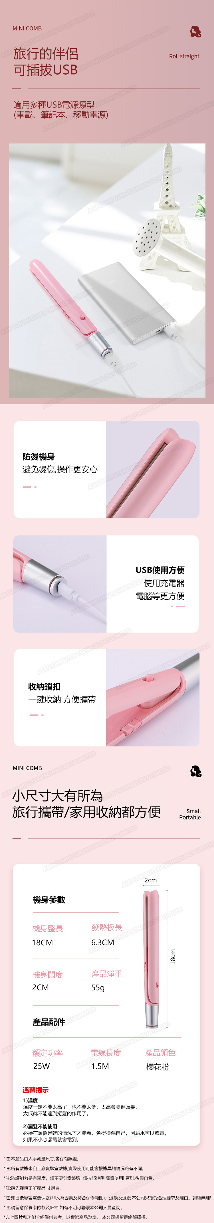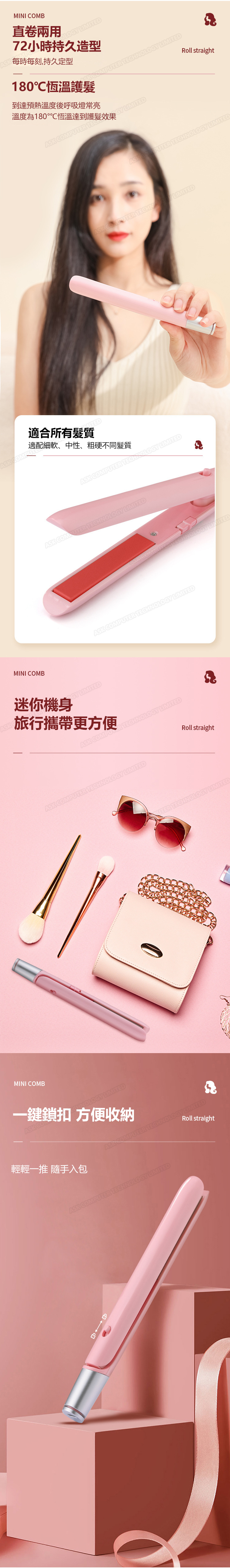 日本AKI USB夾板迷你小型卷髮棒 無線便攜直捲兩用直髮器