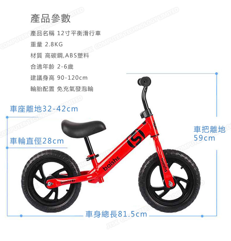 日本JTSK 12寸兒童平衡學步車 (P2428)