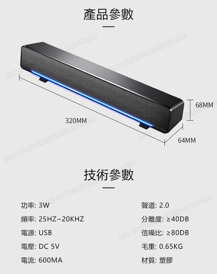日本JTSK 3D音效多媒體音箱長條喇叭