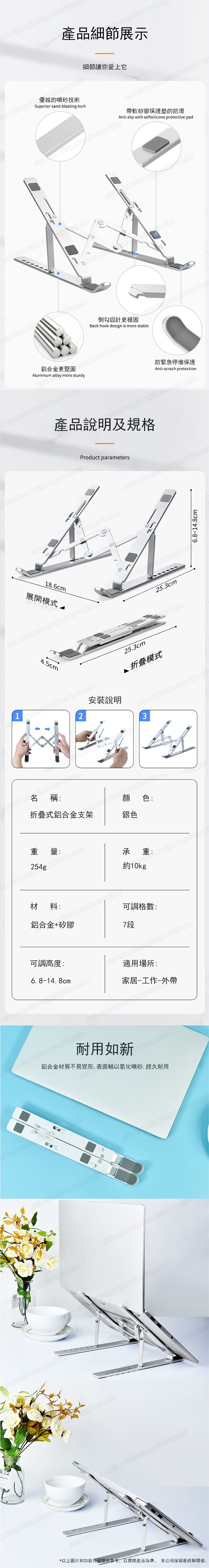 日本JTSK 可折疊鋁合金筆記本電腦平板電腦支架 便攜收納散熱托架