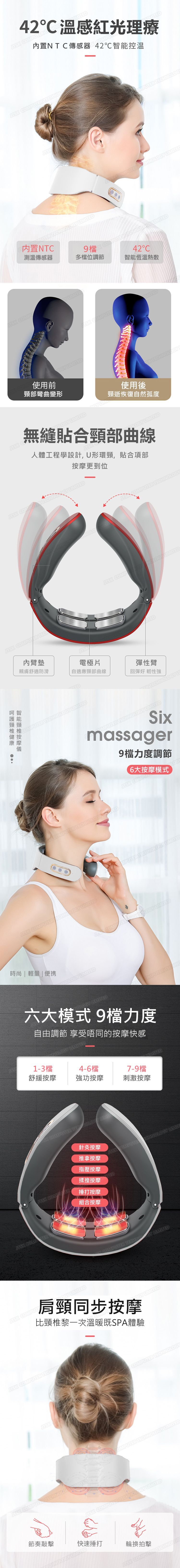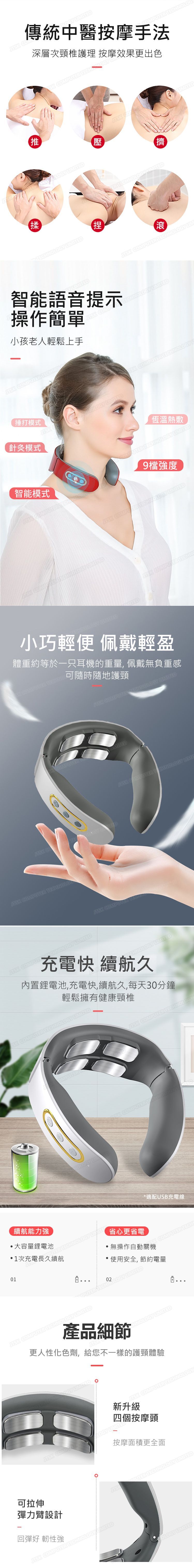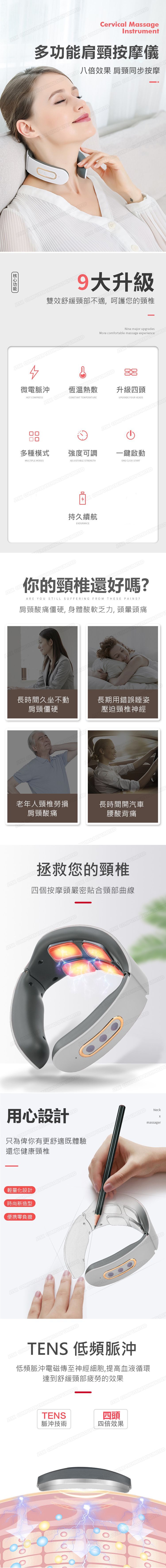 日本JTSK 智能四按摩頭充電加熱頸椎按摩器 多功能肩頸脈衝理療按摩儀護頸儀 P3209