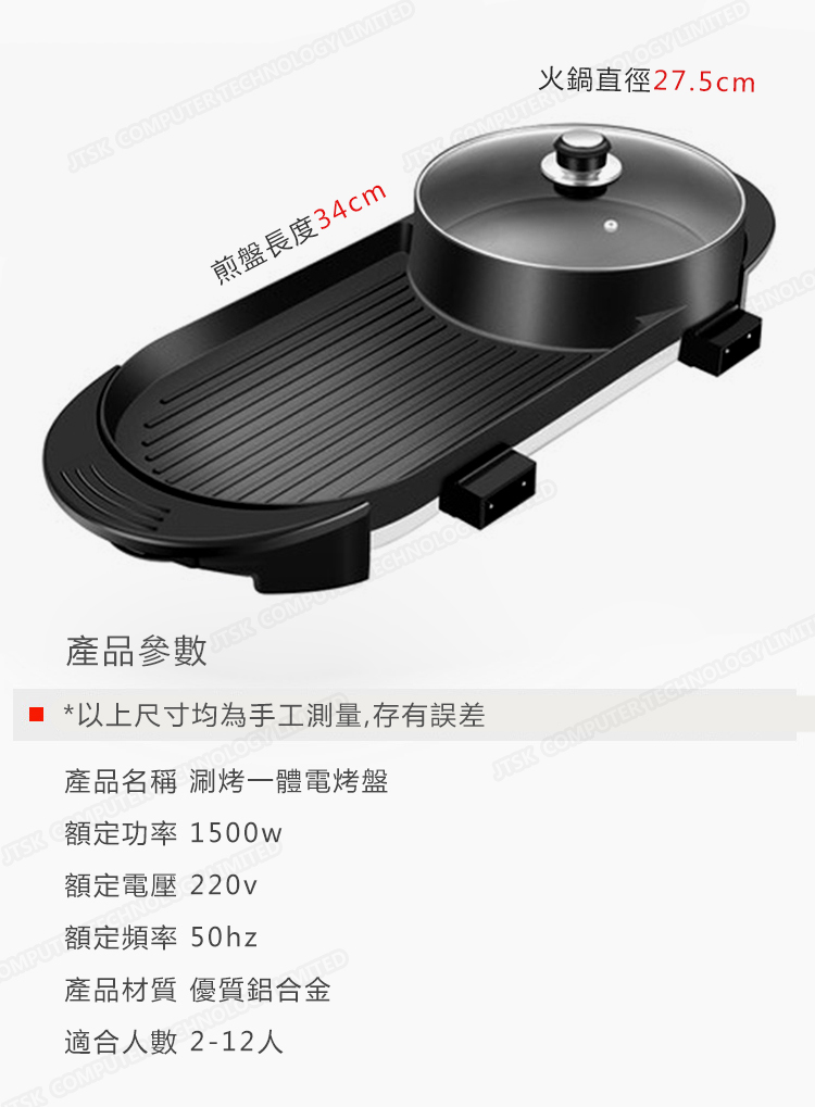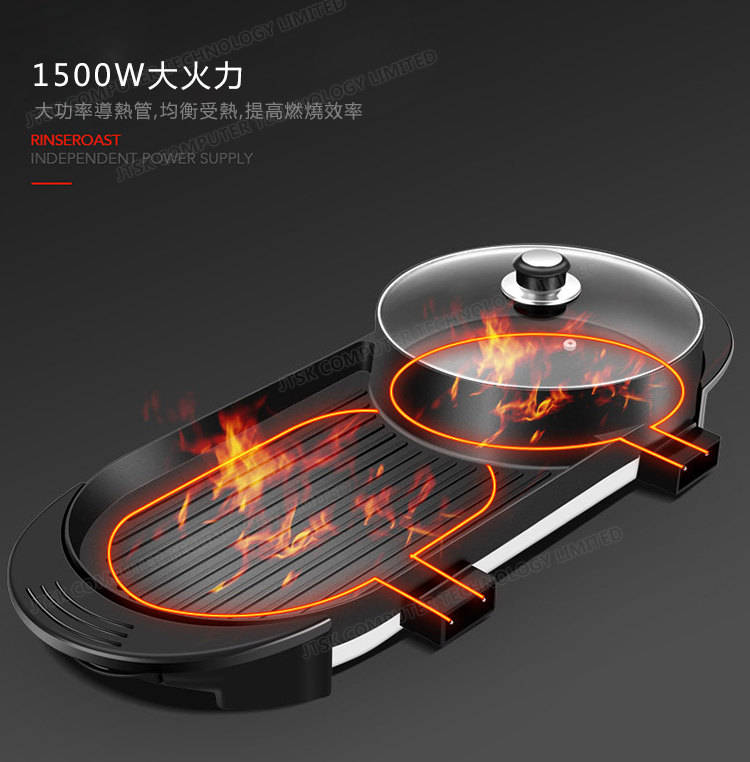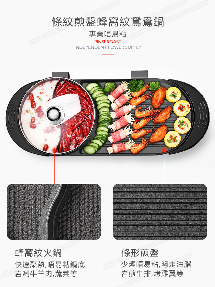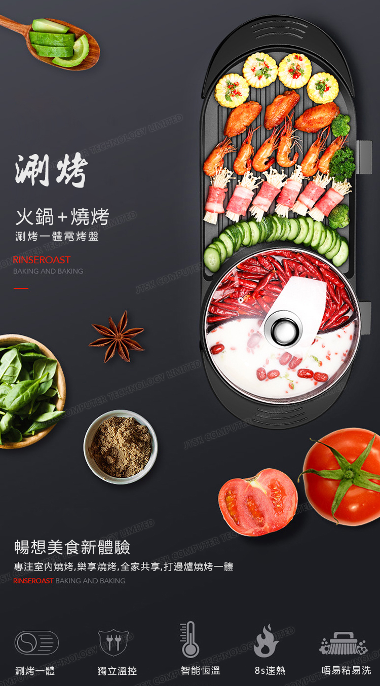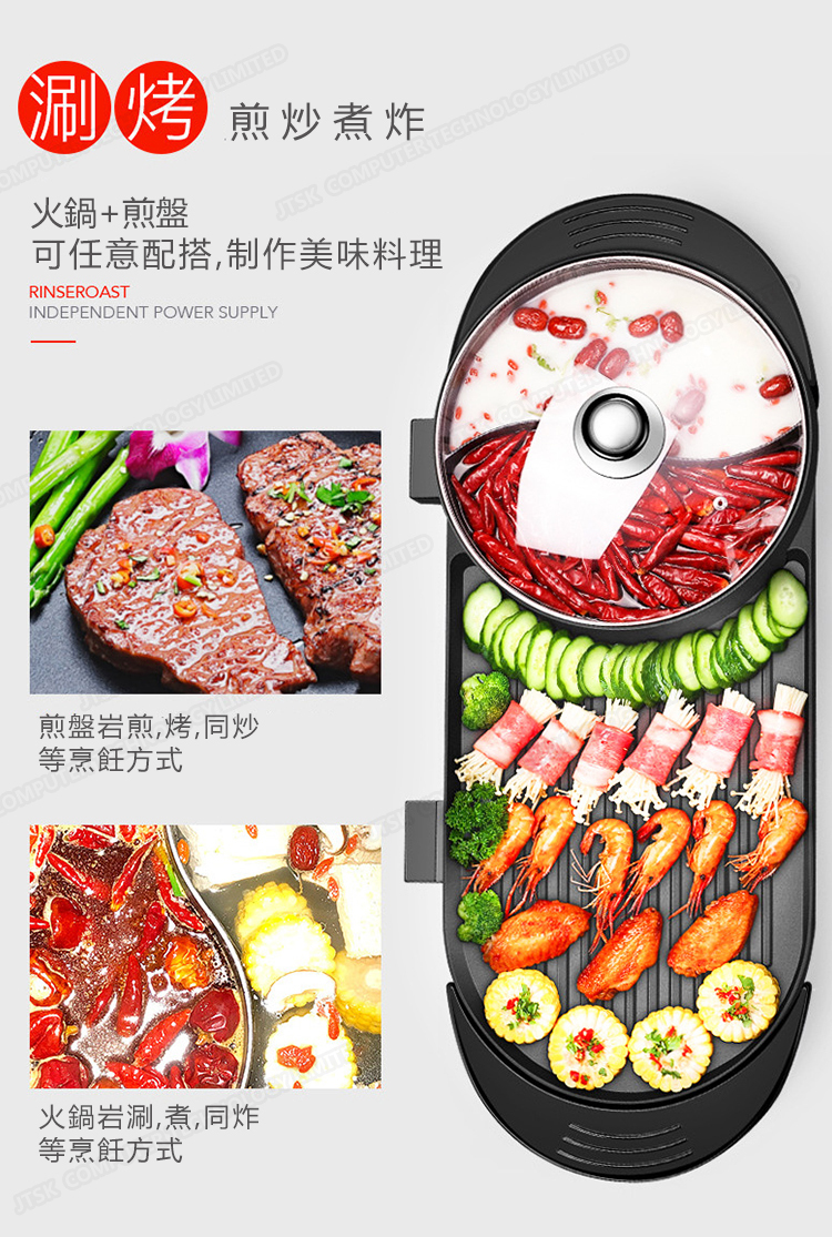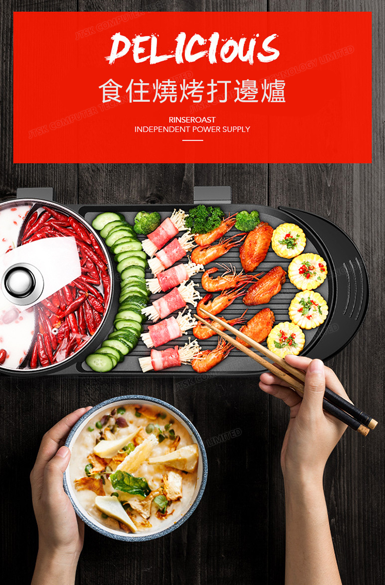 日本JTSK 韓式無煙涮烤一體式電燒烤爐-多功能鴛鴦火鍋