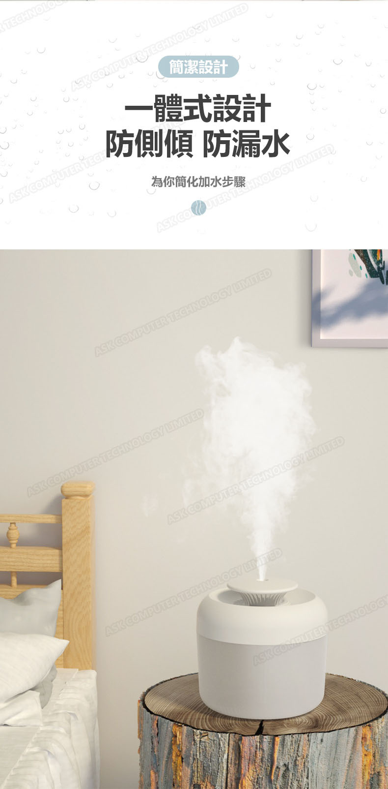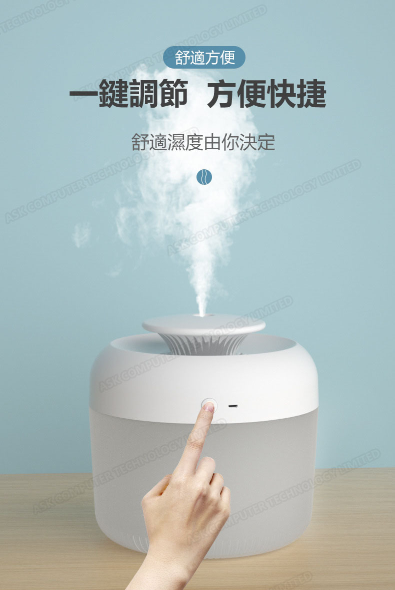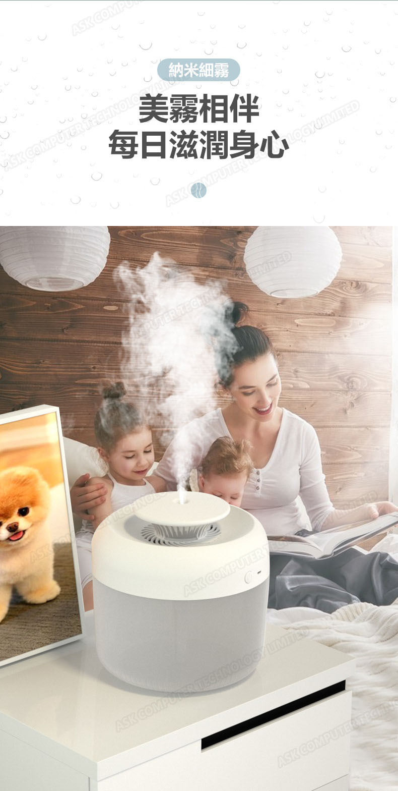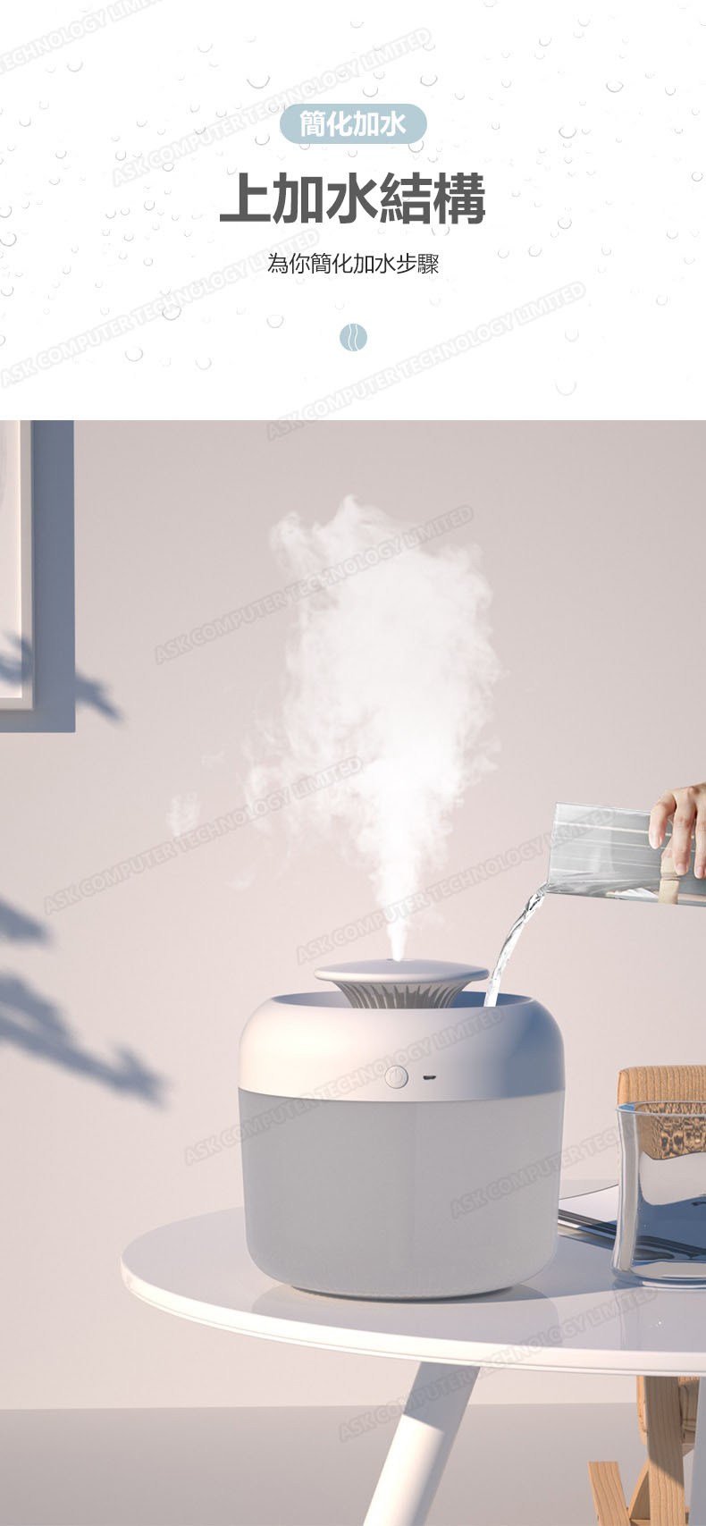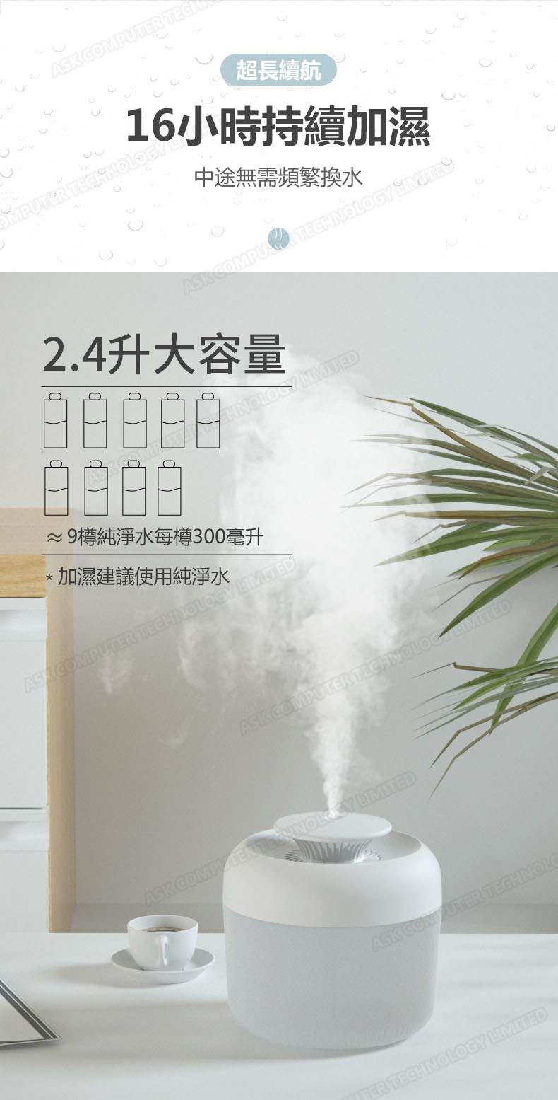 日本JTSK 大容量2.4L靜音香薰空氣加濕器 家用辦公室USB帶七彩夜燈