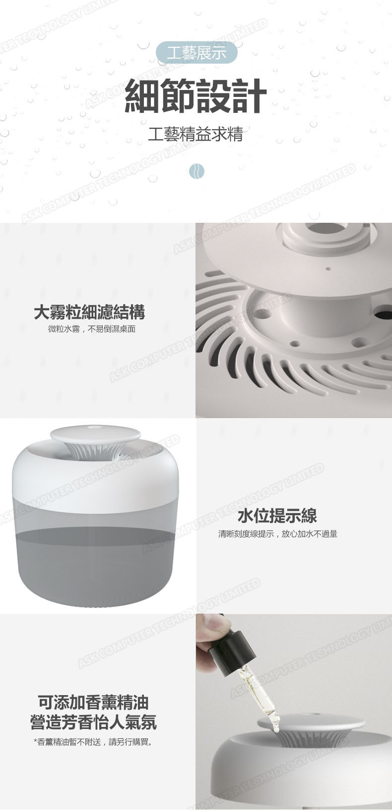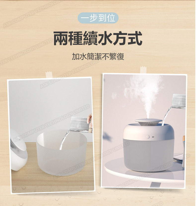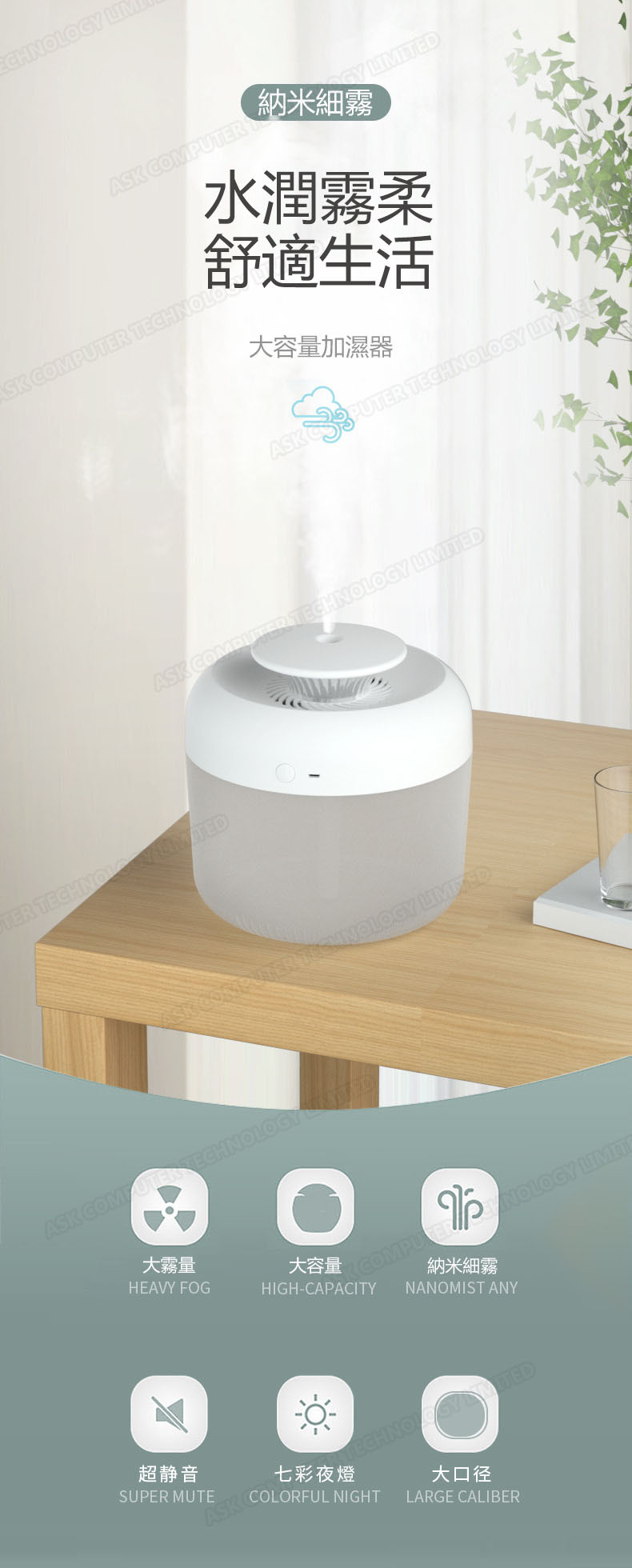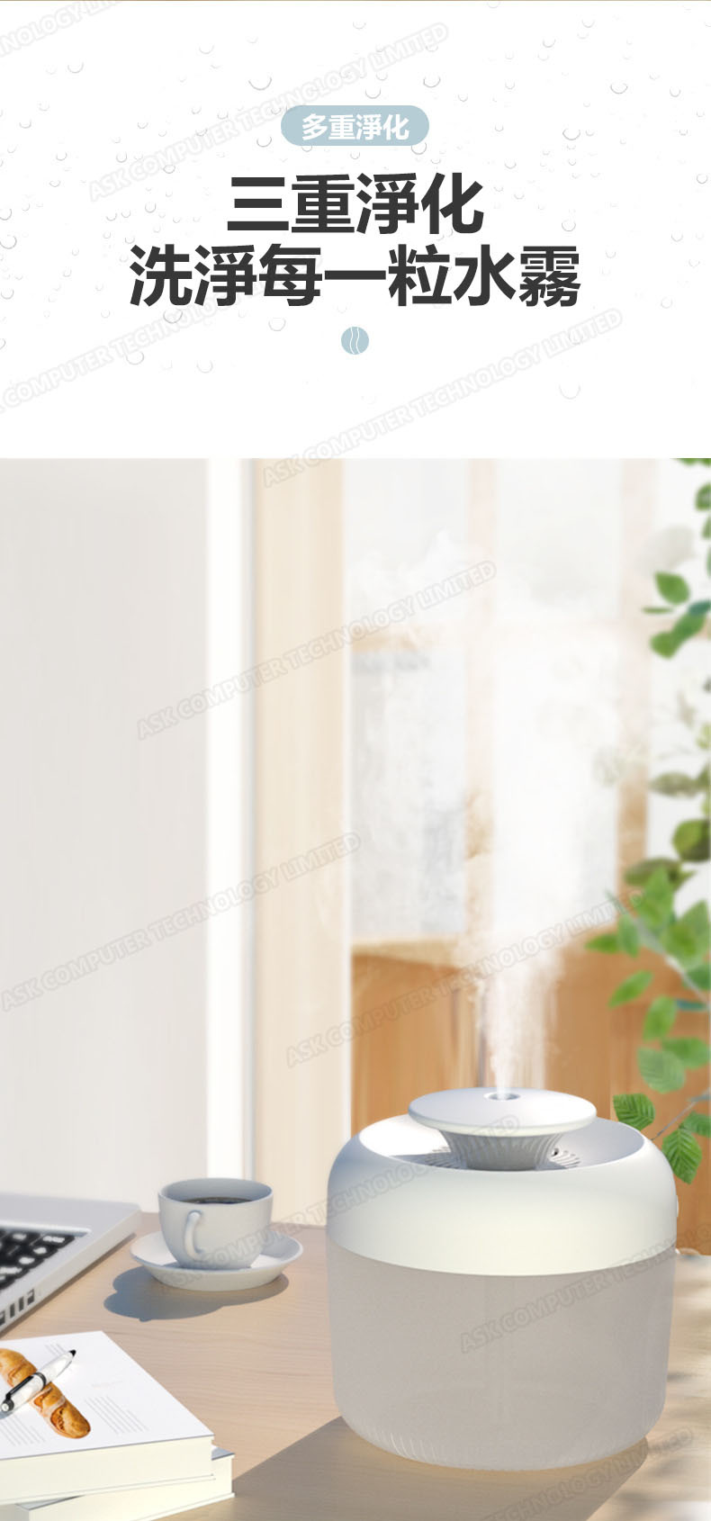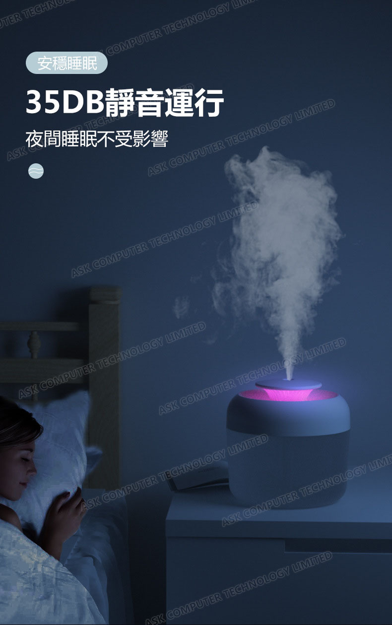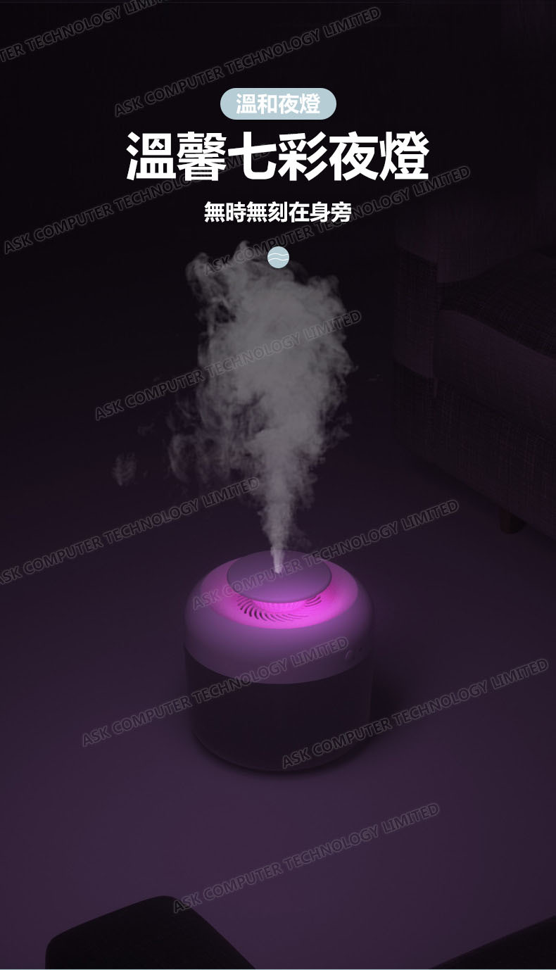 日本JTSK 大容量2.4L靜音香薰空氣加濕器 家用辦公室USB帶七彩夜燈