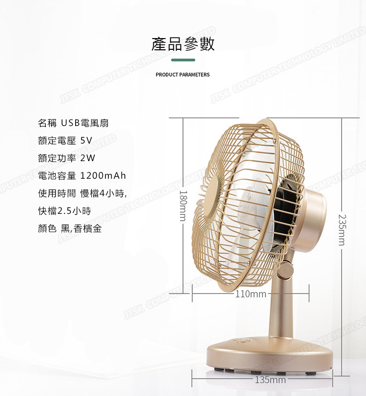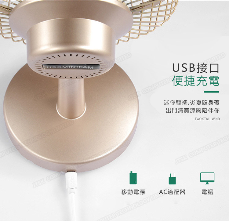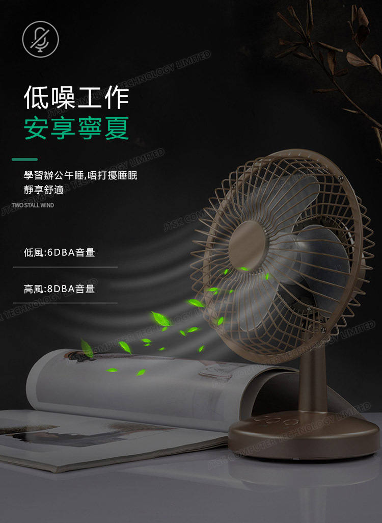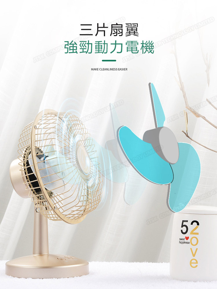 日本JTSK 迷你6寸可充電USB座檯風扇 便攜超強風力
