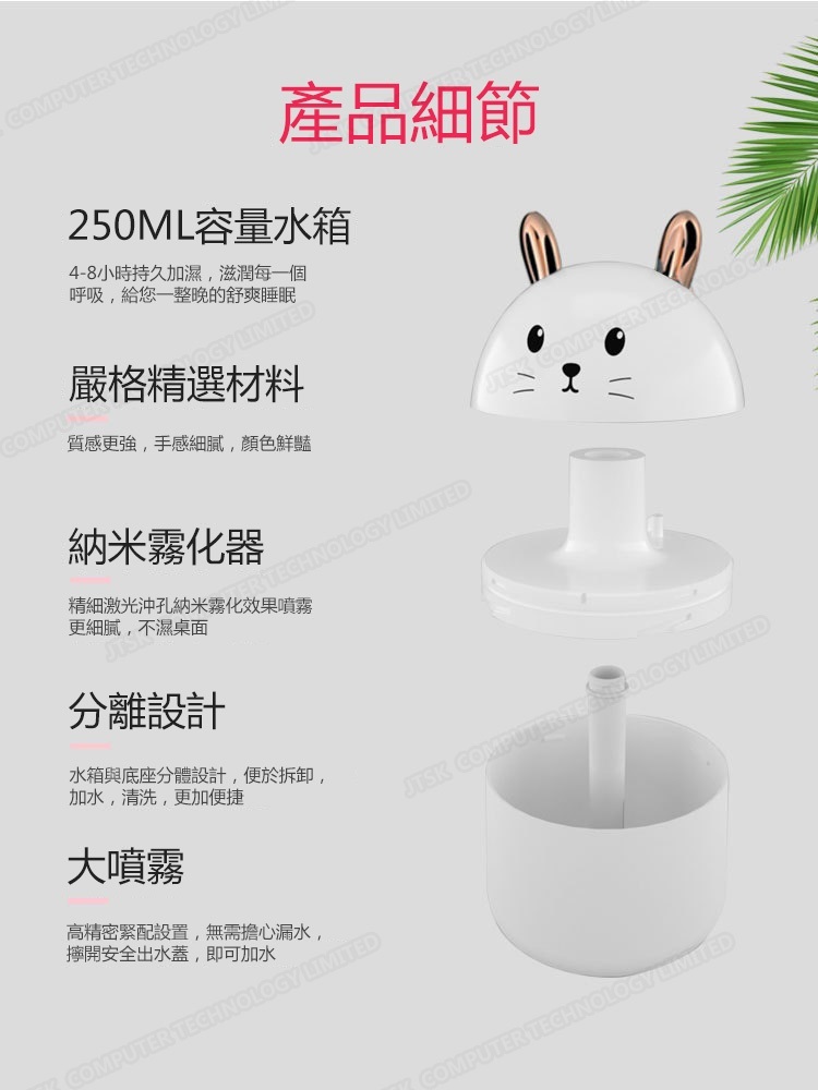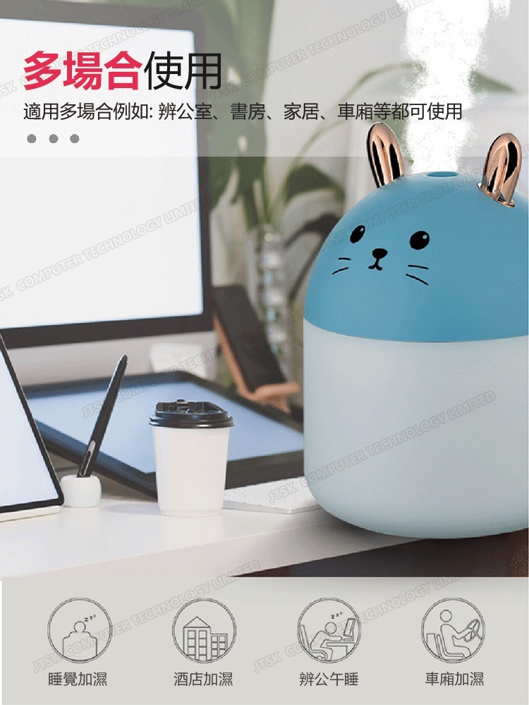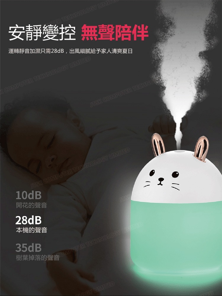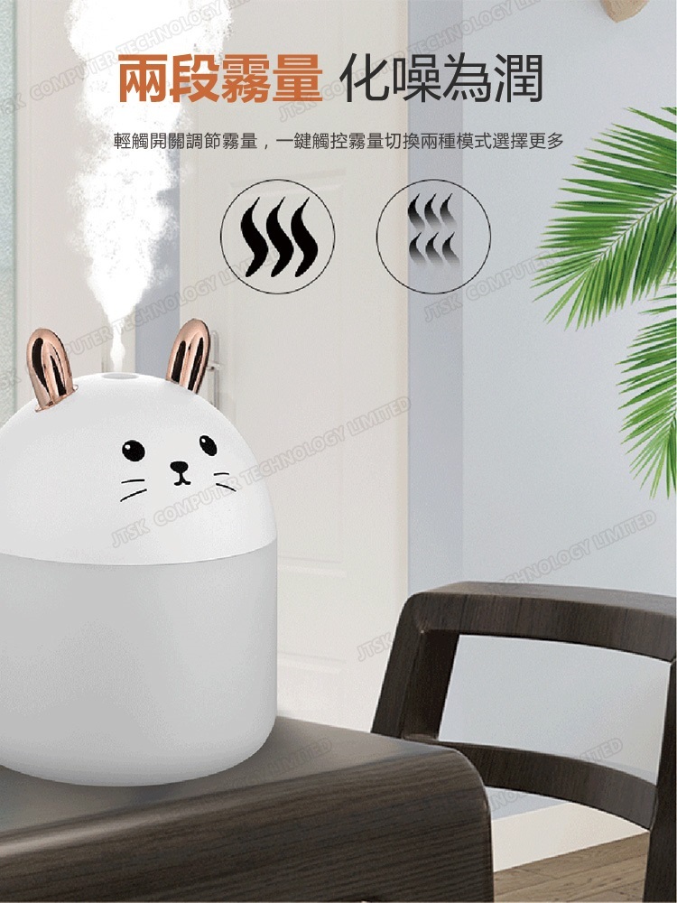 日本JTSK 靜音萌兔USB空氣噴霧加濕器 家用辦公室空氣加濕