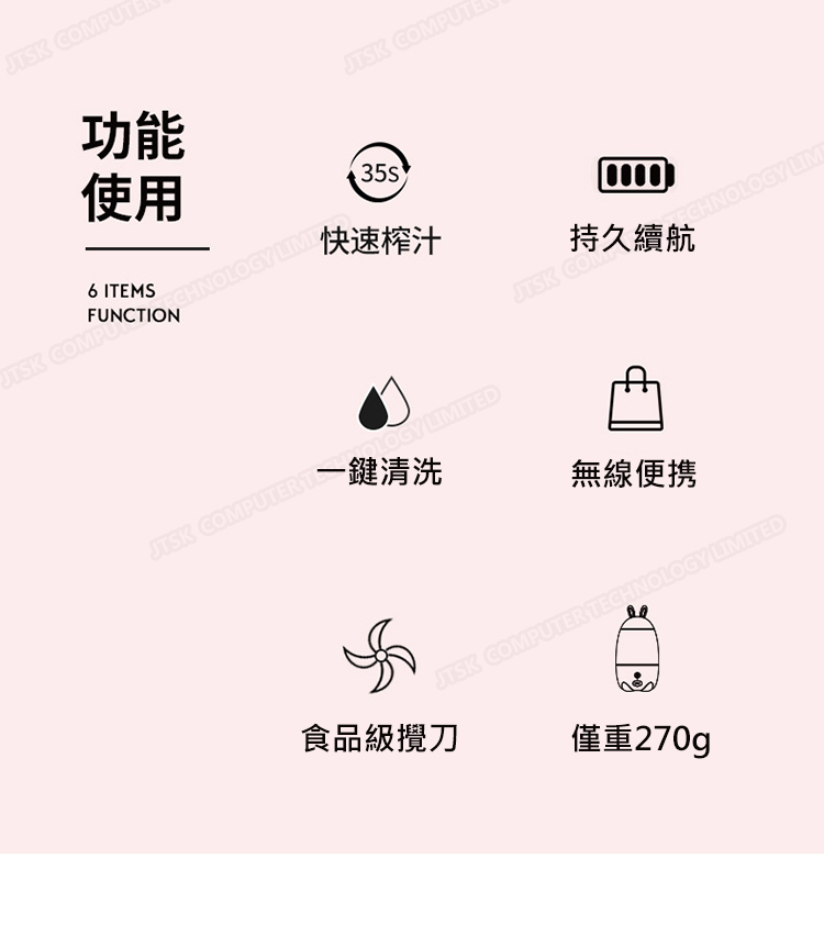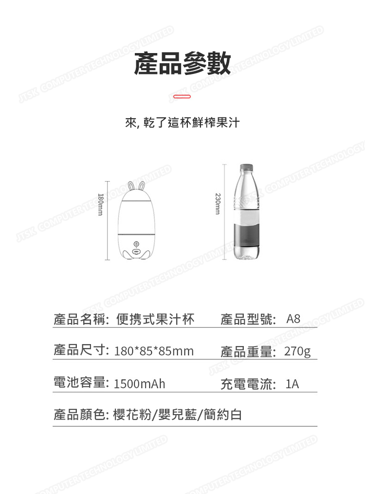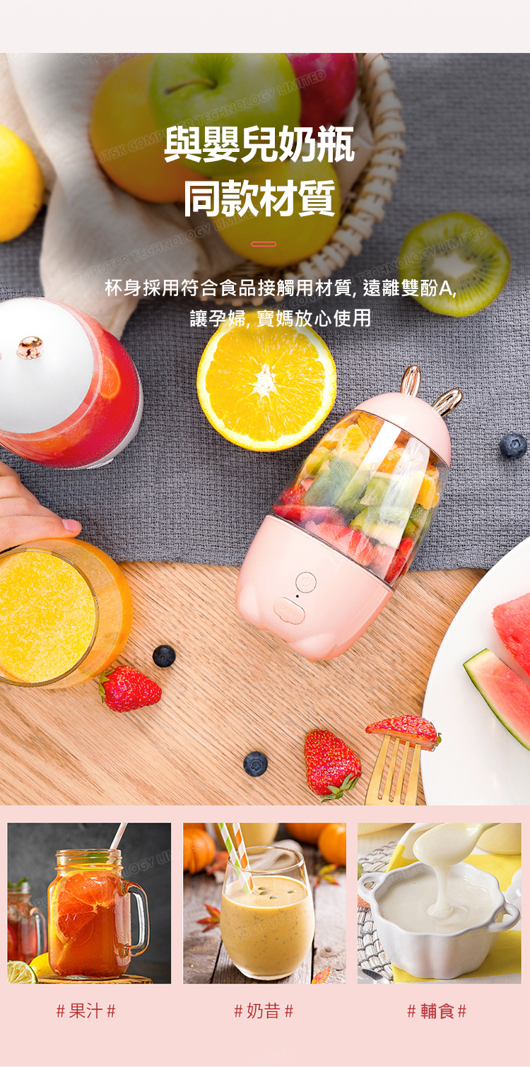 日本JTSK 便攜USB充電式無線自由電動榨汁機攪拌果汁杯