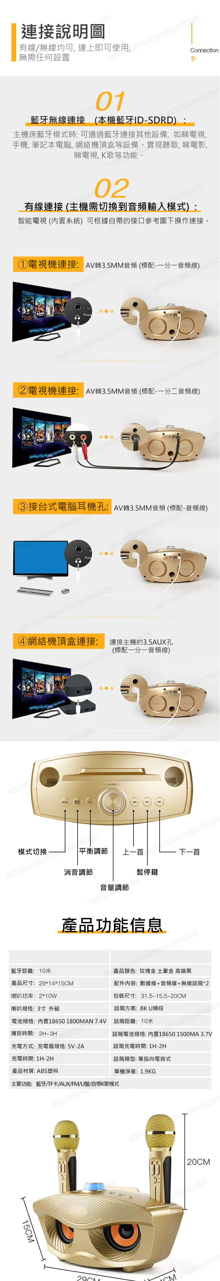 日本JTSK SDRD便攜式KTV無線音響一體卡拉OK點歌機 -- 家庭K歌套裝
