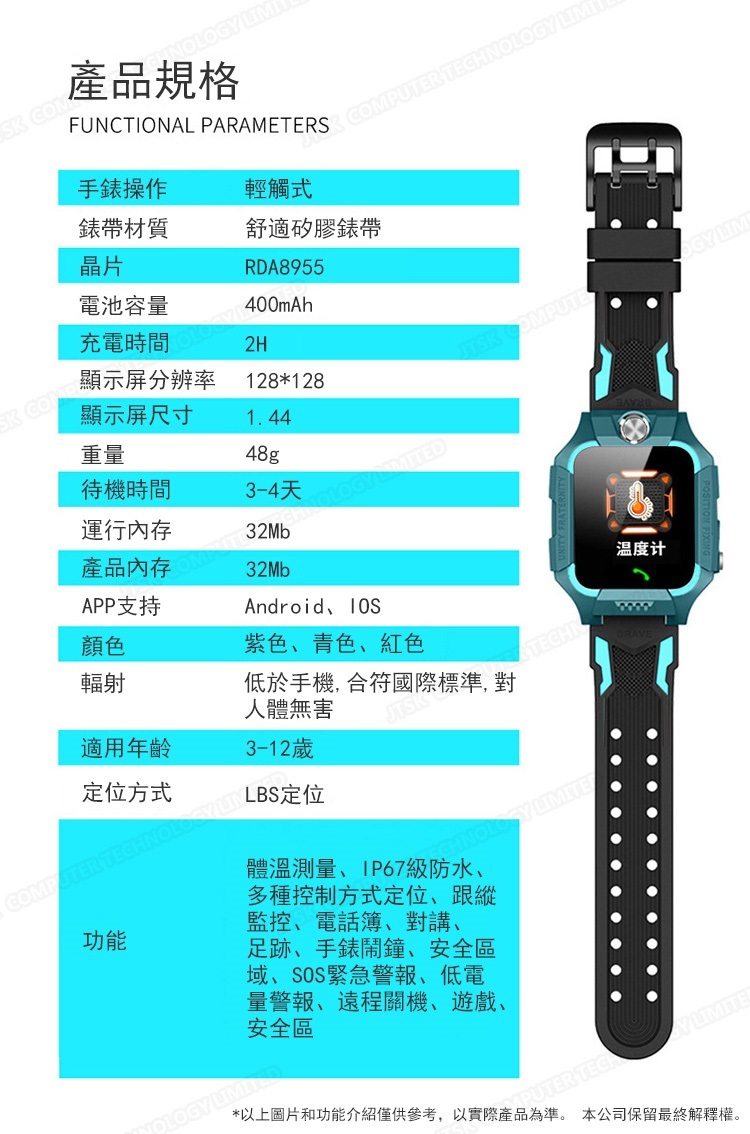 日本JTSK 智能兒童測體溫防水定位電話手錶 實時精準測量溫度