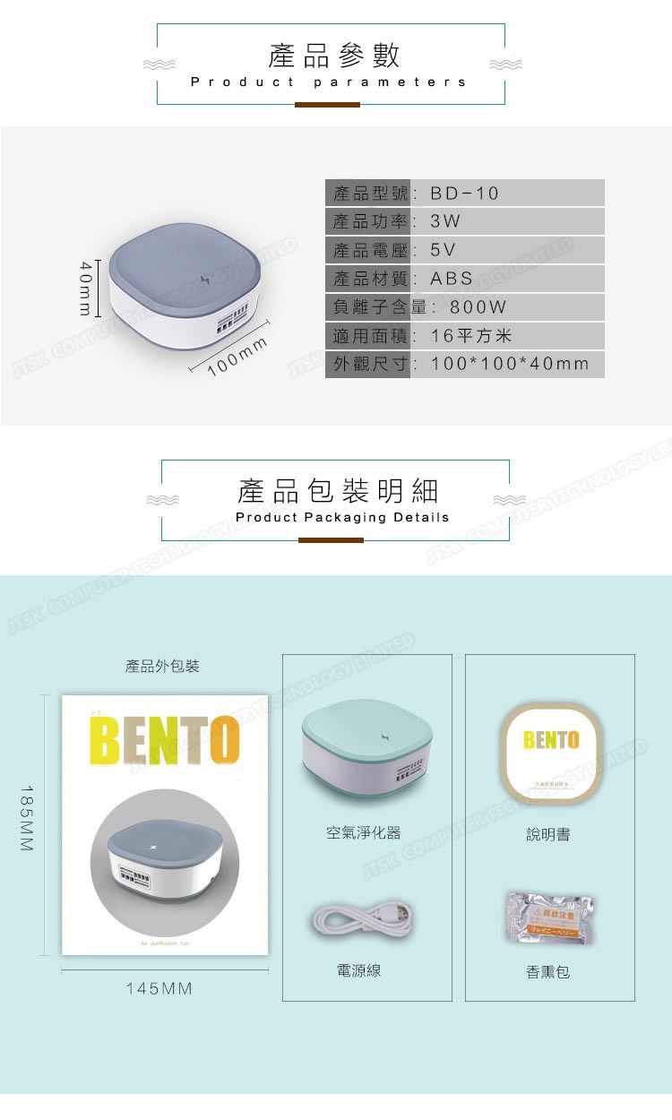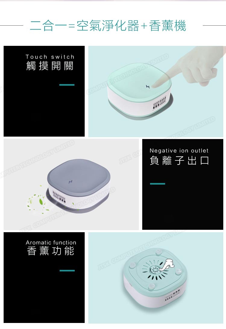 日本JTSK 智能除甲醛負離子香薰空氣淨化器 -- 家用車載座枱式
