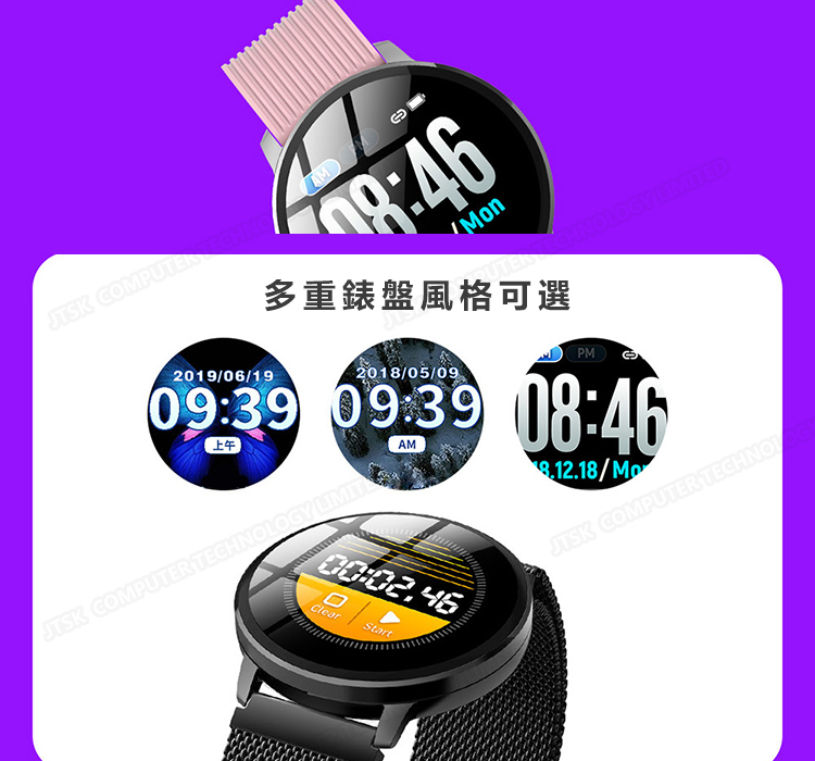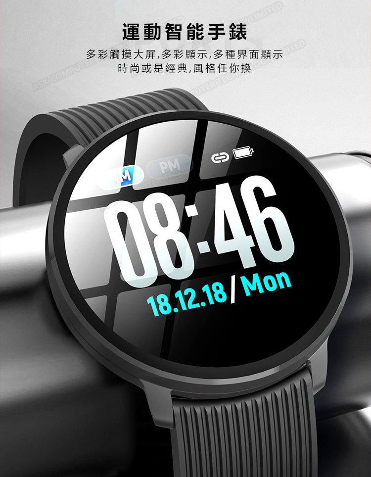 日本JTSK W18 1.3寸大屏健康計步運動防水智能手錶