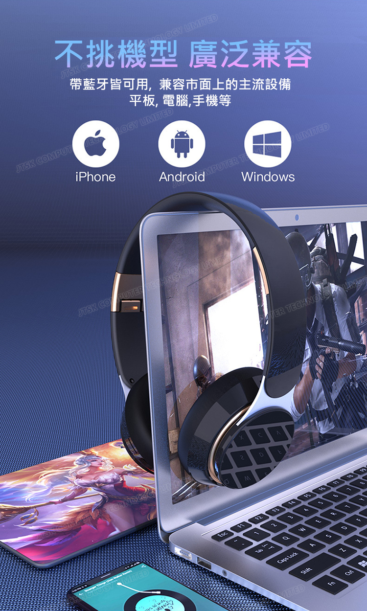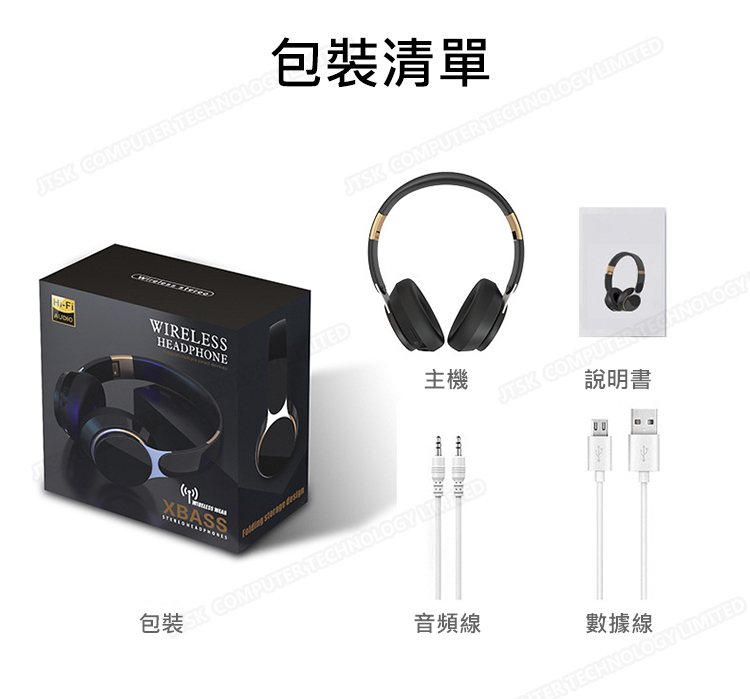 日本JTSK 無線運動頭戴式重低音插卡藍牙耳機 立體聲通話